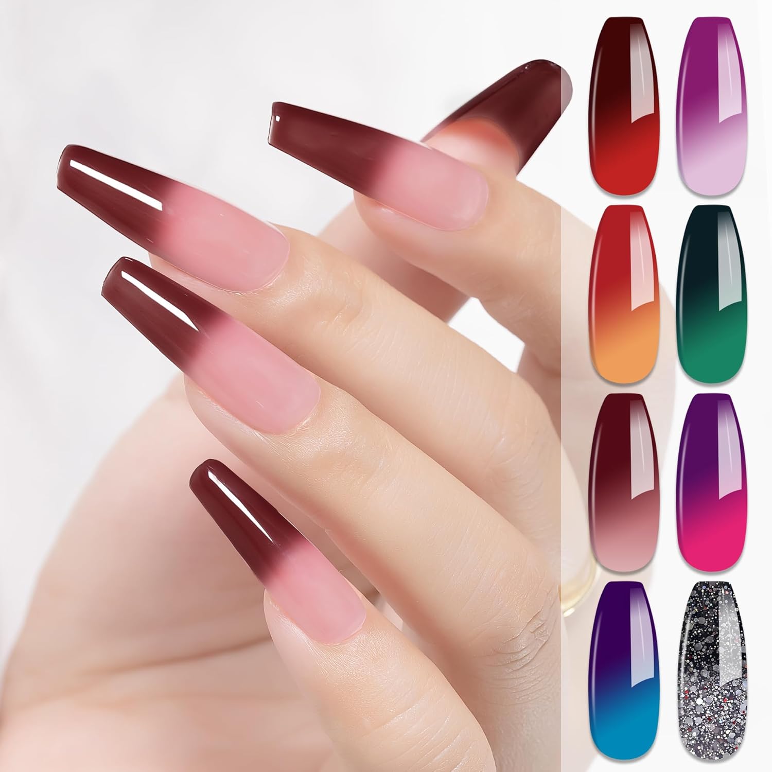 YTD Likomey Color Changing Gel Nail Polish Set,8 Colors Mood Temperature Change Colors Red Pink Green Blue Yellow Black Glitter Fall Winter UV Color Thermal Ombre Varnish Kit,7.5 ml 0.25 Fl Oz