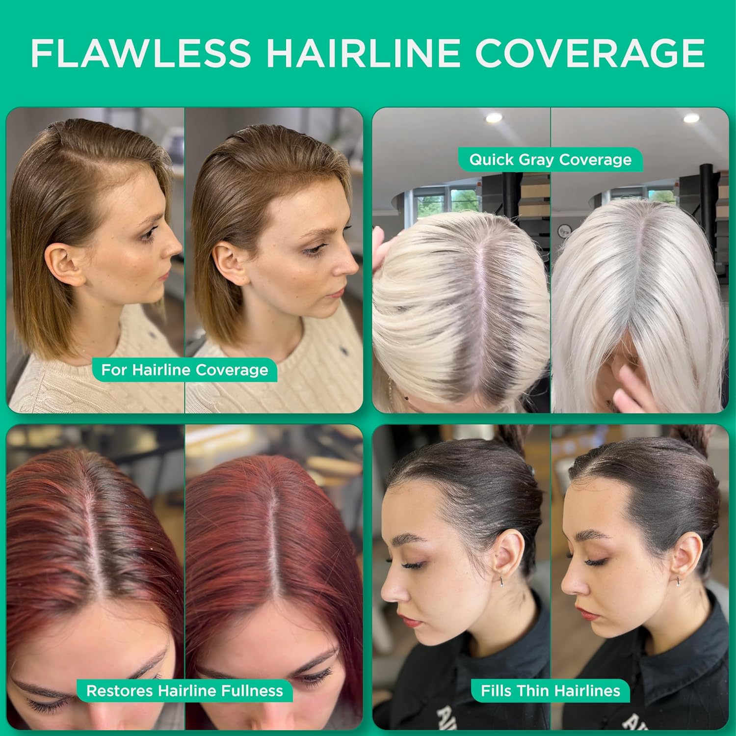 - WATER AND SWEAT RESISTANT: Our root cover up hair mascara is designed to withstand any weather conditions including wind and rain. Just use our hair line shadow powder and feel confident whether you're facing a rainy day or an active workout – your flawless look stays intact. Note, a tiny bit of hair spray is recommended, once applied donot touch even if it rains, it will stay firm and last until hair is washed with a shampoo