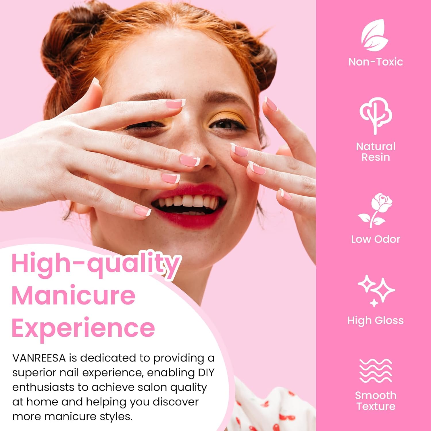 - ăHealthy & Long Lasting Manicureă VANREESA gel nail polish ingredients are made of natural resins, which are safe, non-toxic and low-odor, so you can use them with confidence. VANREESA gel nail polish is silky smooth, brightly colored and easy to apply, so even beginners can master its use. Prepare well before you start (shaping, buffing, cleaning) and follow the correct steps in the manicure instructions and your nail art will last for 21+ days!