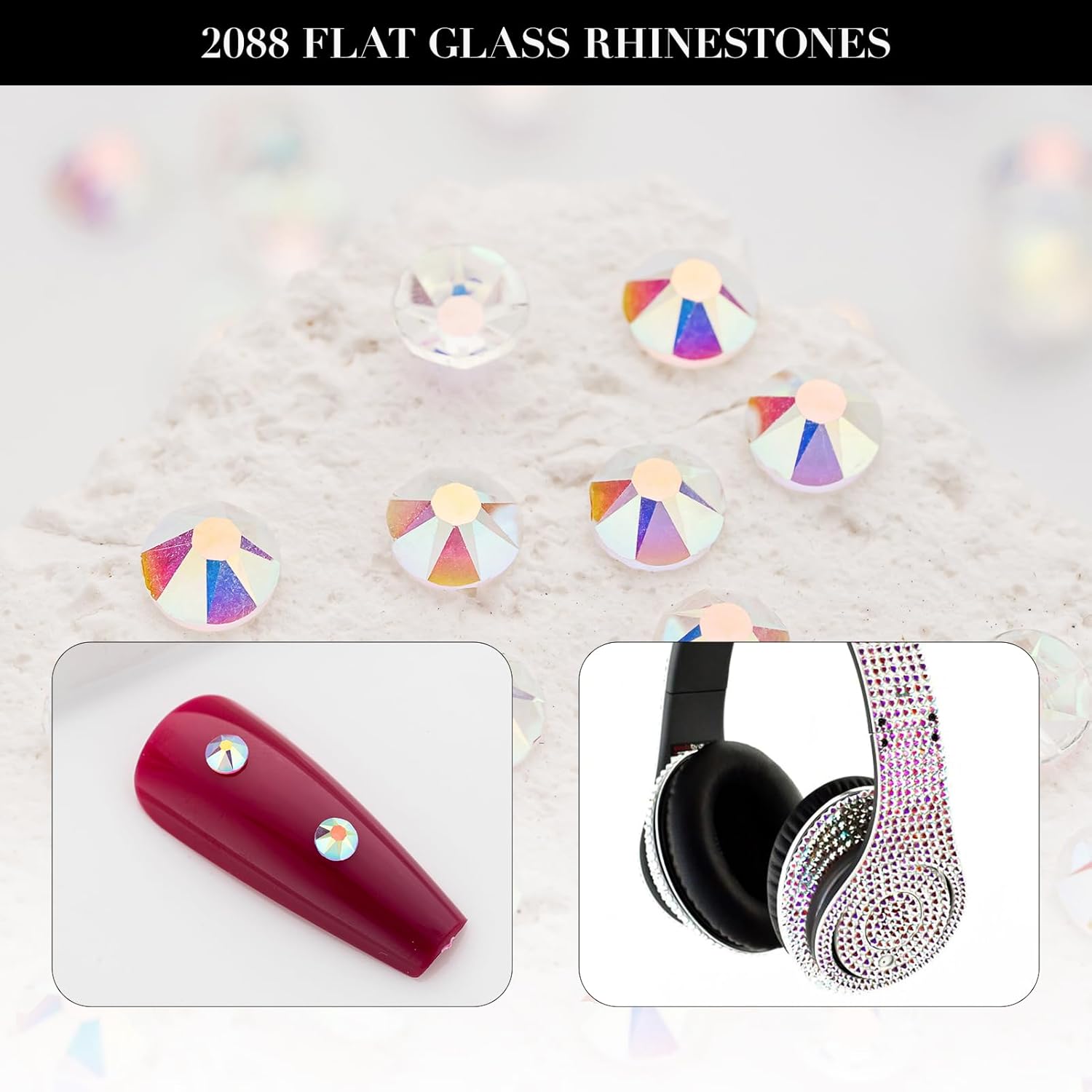 Novani Transparent AB Rhinestones 1440pcs Flat Back Round Rhinestone Style 2088 Sparkly Crystal Gemstones for Nail Art and Crafting SS20,4.6-4.8mm
