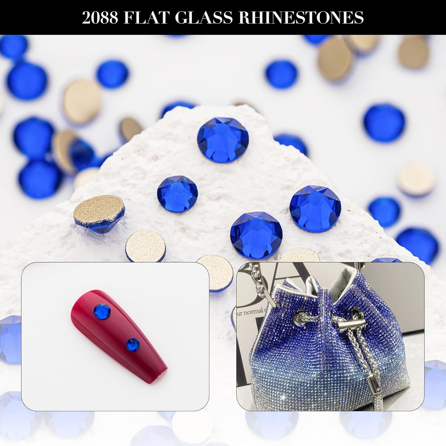 Novani Sapphire/Royal Blue Rhinestones 1440pcs Flat Back Round Rhinestone Style 2088 Sparkly Crystal Gemstones for Nail Art and Crafting SS16,3.8-4.0mm