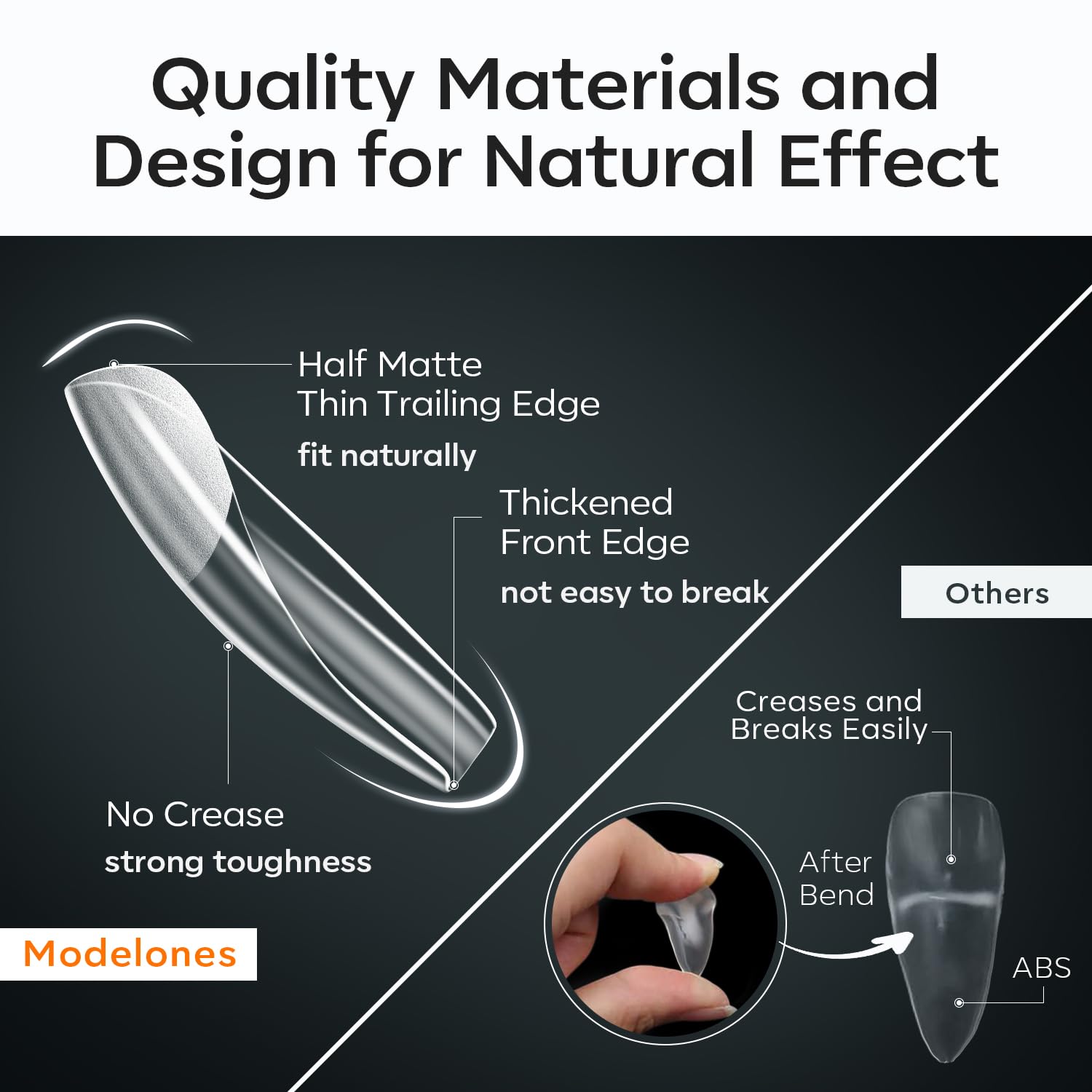 - Upgraded Half Matte XXL Long Square Nail Tips: You can easily extend your nails and enjoy the fun of DIY manicure with Modelones pre-buff gel nail tips! Half-matte texture design for increased friction and increases adhesion