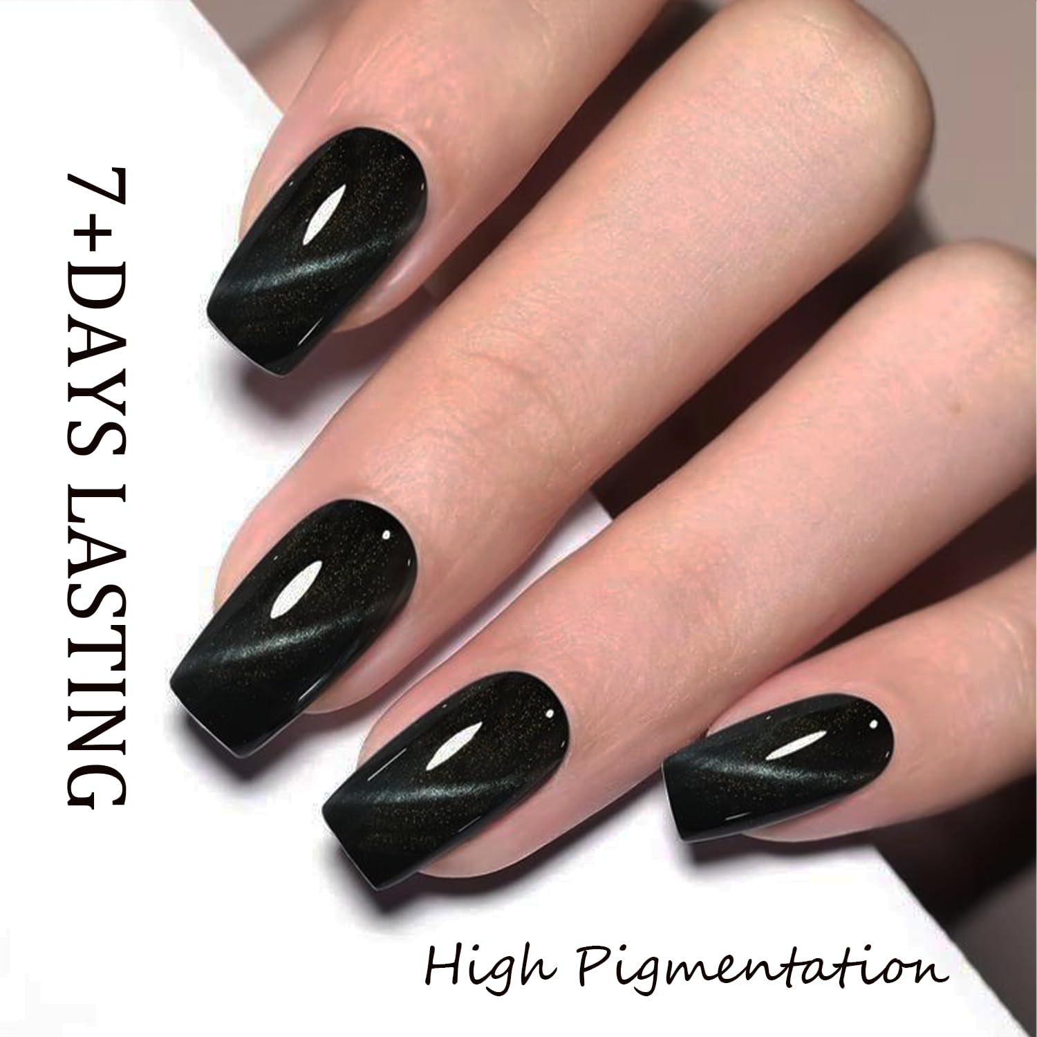 - Tips: Hold the magnetic stick 3-5mm above the surface for 5-10 seconds to achieve your desired effect! [ What You Get]: Black Red Colors of Semi-transparent Holographic Glitter Cat Eye Gel Nail Polish (5 ml/ 0.17 fl. oz each) + 1 Magnetic Stick for various cat eye designs. Each shade of Modelones cat eye nail polish is expertly mixed with metallic magnetic glitter powders for a stunning, shiny finish. Different angles create different visual effects. Practice makes perfect!