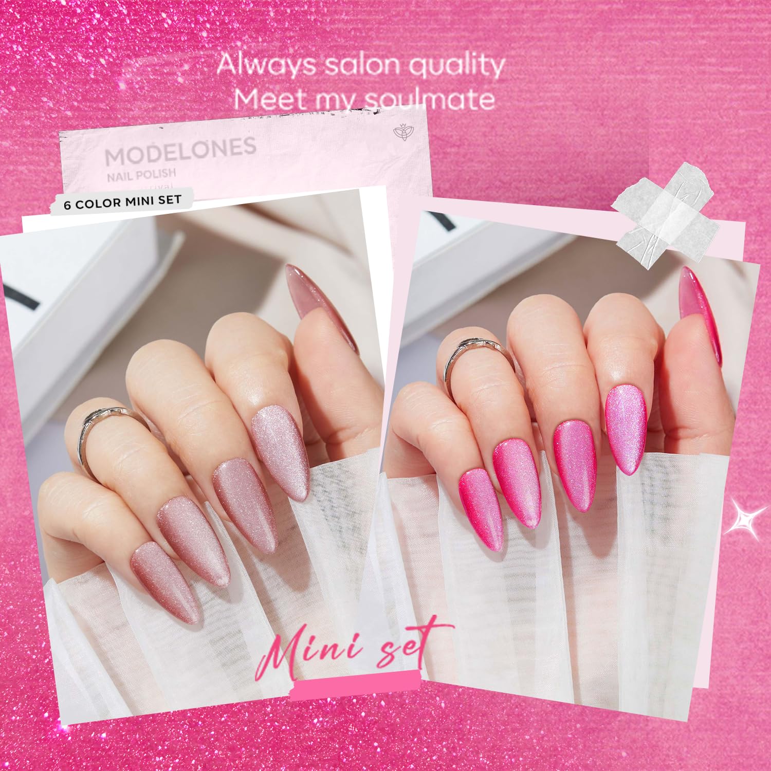 modelones Cat Eye Nail Polish Set, 6 Colors Magnet Dark Red Black Pink Shimmer Glitter Quick Dry Nail Polish Set Bulk Manicure Diy Nail Art Salon Home Gift for Women Girl