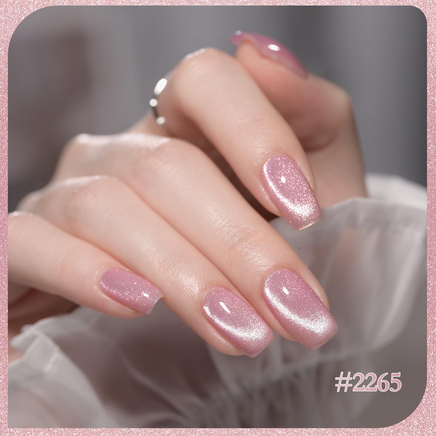 - Glitter Cat Eye: Use the magnet to create desired pattern before curing. Apply gel top coat for gorgeous shimmery and sparkly finish. Heat up in winter to reduce thickness.