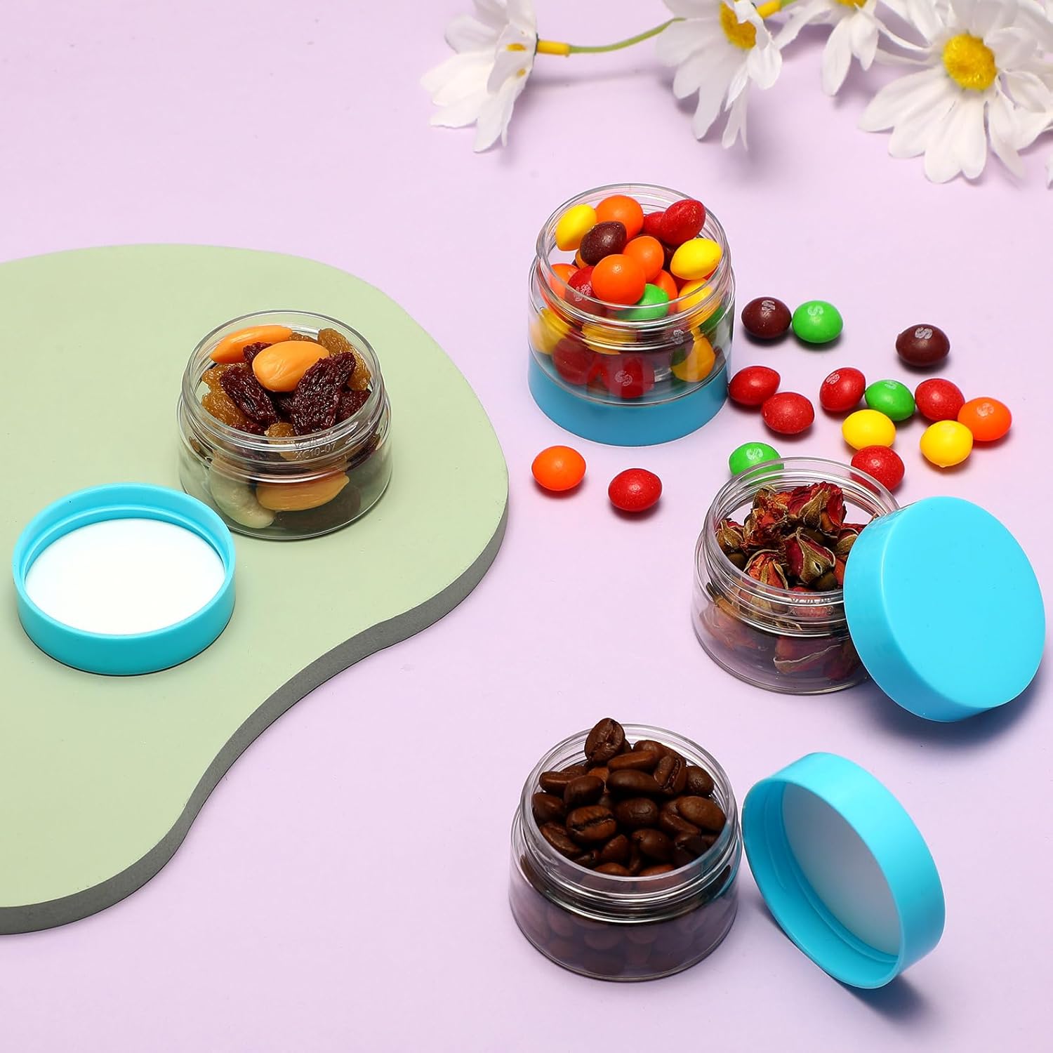 Patelai 4 Pieces Round Wide-mouth Leak Proof Plastic Container Jars with Lids for Travel Storage Makeup Beauty Products Face Creams Oils Salves Ointments DIY Making(1 Ounce,Blue)