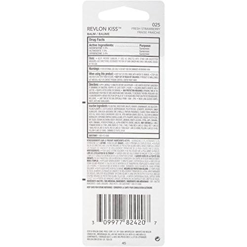 Revlon Lip Balm, Kiss Tinted Lip Balm, Face Makeup with Lasting Hydration, SPF 20, Infused with Natural Fruit Oils, 025 Fresh Strawberry, 0.09 Oz (Pack of 2)