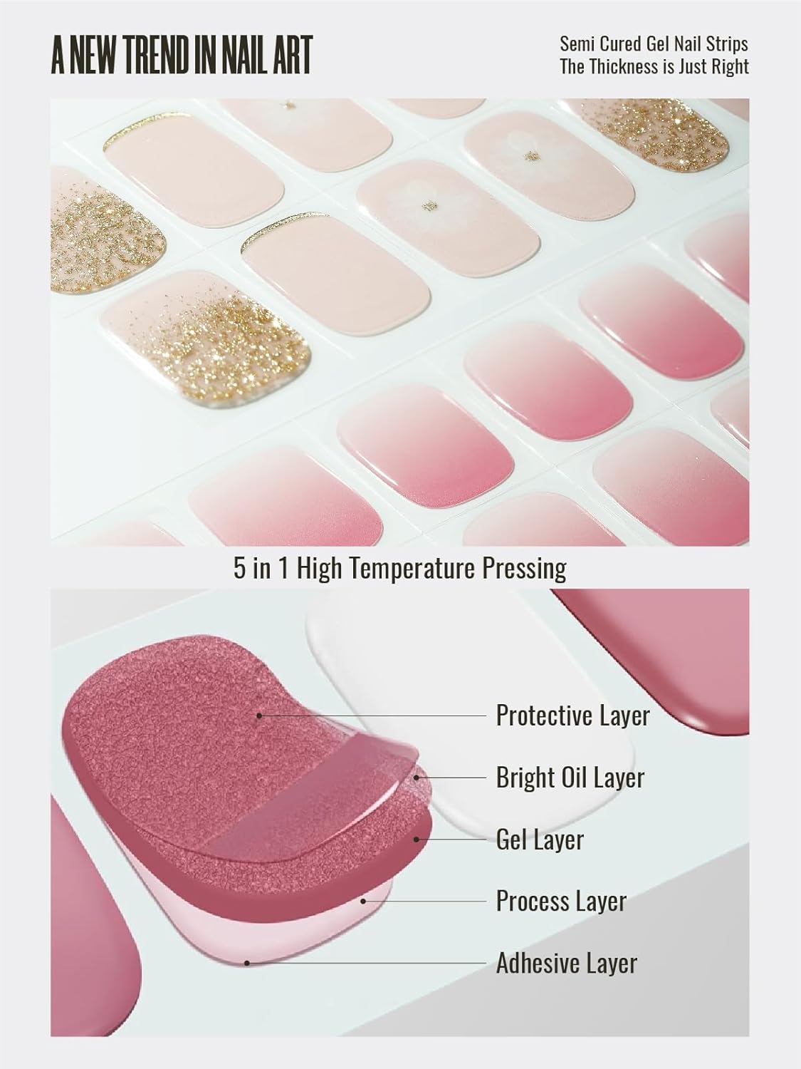 - ăREAL GEL NAIL STRIPS SETăOur nails strips are made with real gel, which means they are only 60 percent cured so they remain stretchy and flexible for application.Unlike flimsy nail stickers, these strips are supposed to feel like and last as long as a gel manicure.You don't get manicures anymore thanks to these semi cure gel nail strips that keep your nails damage-free.