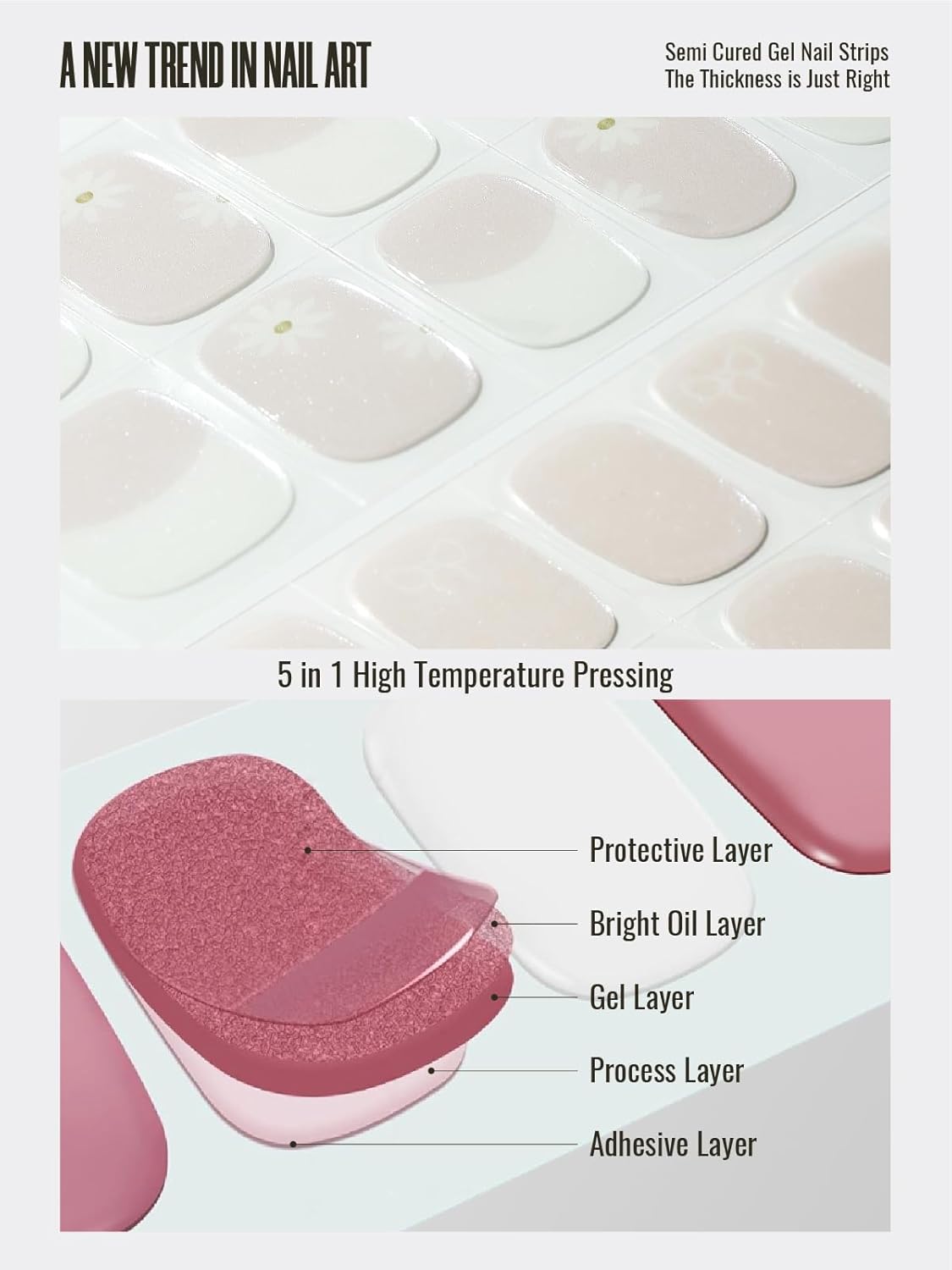 Semi Cured Gel Nail Strips, 30 pcs Stikers, Wraps, Salon-Quality, Easy to Apply, 2 Weeks Long Lasting (Daisy Delight)