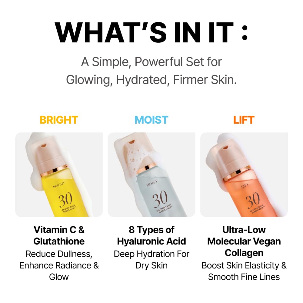 MENOKIN Korean Face Mask 3sets [30 seconds Quick Bubble Mask] (Collagen, Brightening, Moisturizing), Hydration improvement, Radiance-boosting, Easy-to Use, Glass Skin, 3.21 fl.oz