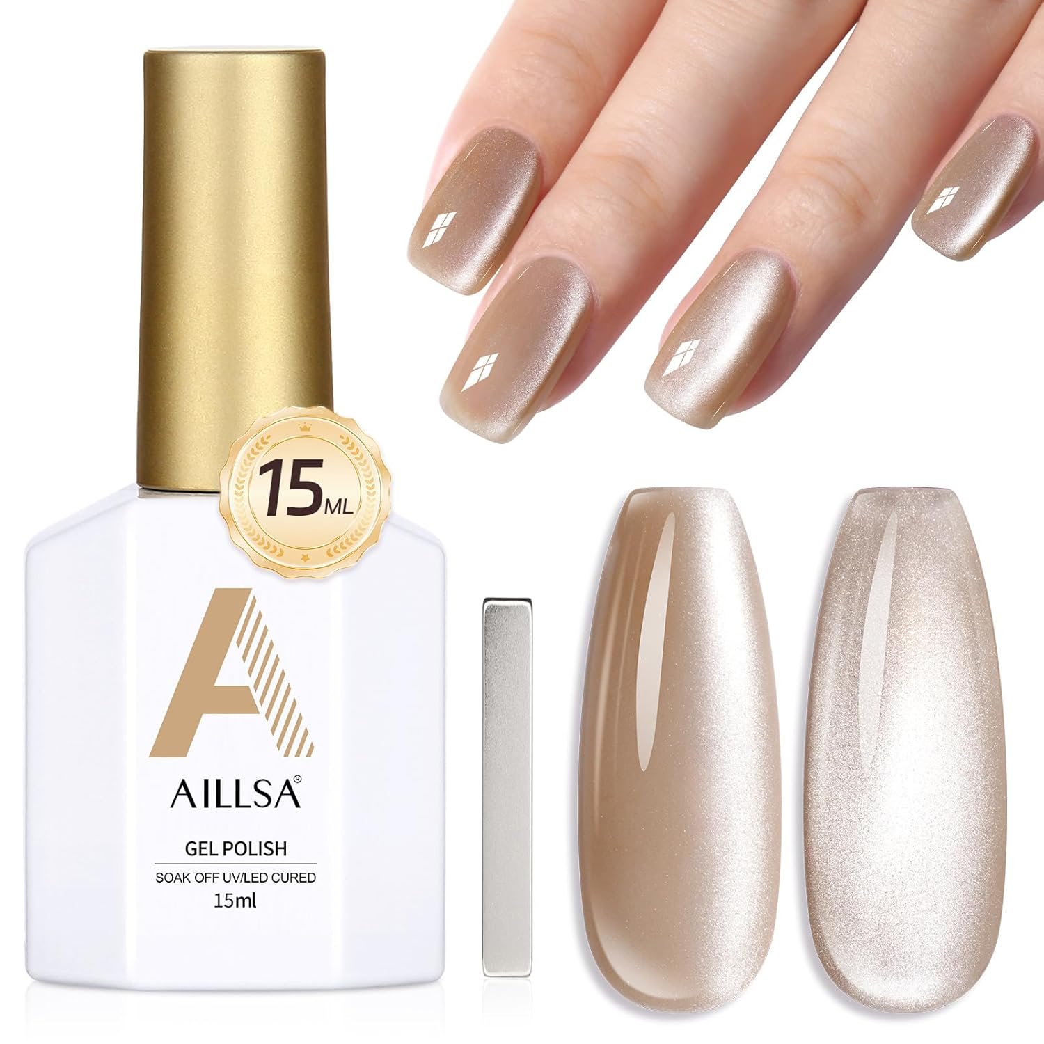 - CRYSTAL SPARKLING EFFECT - AILLSA Cat Eye Gel Nail Polish has a dense magnetic powder that can be used alone for a mirror-shimmering, crystal-clear manicure or with any base color nail polish, jelly gel nail polish, and other nail polishes.