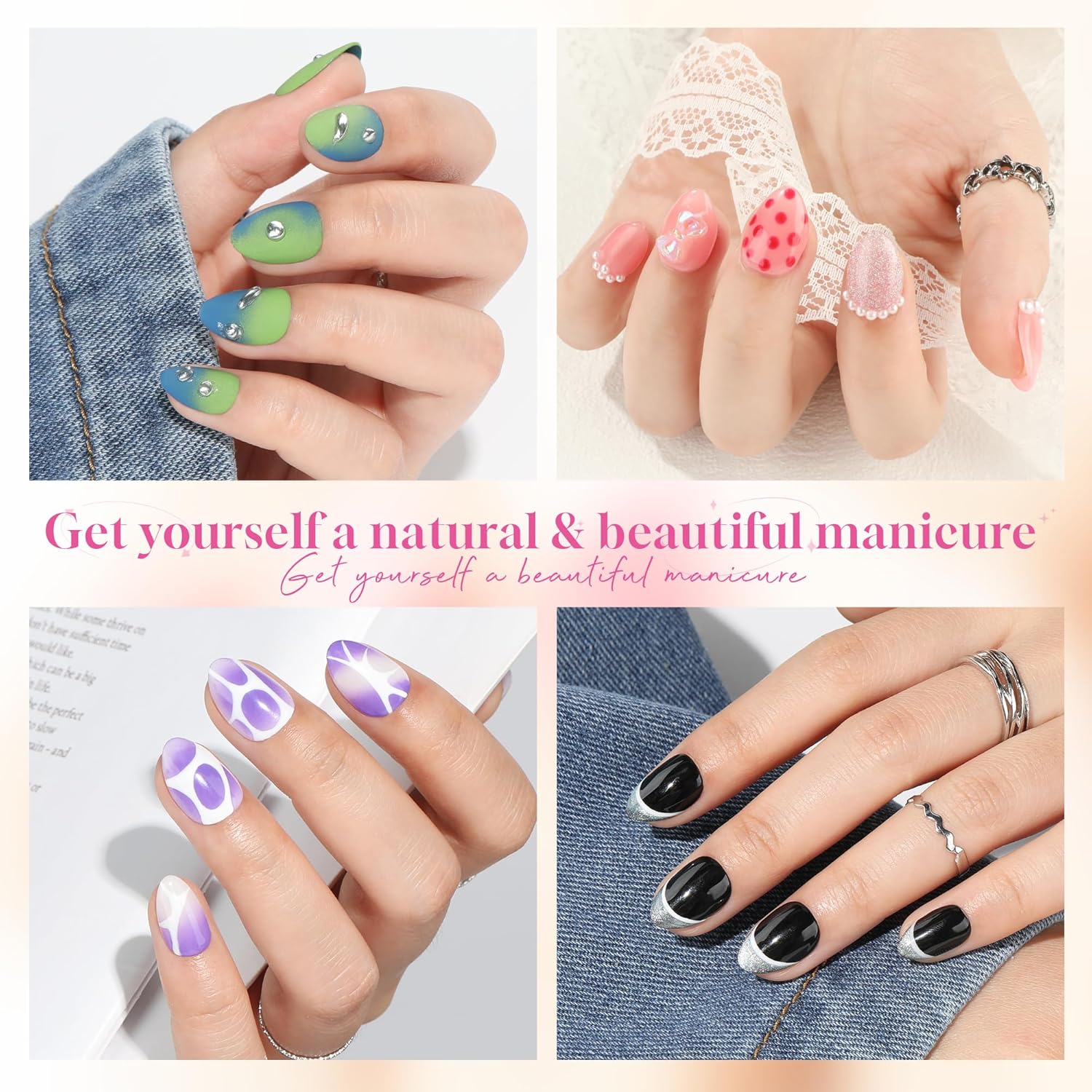 - ❤️【Natural Fit Effect】 The extra short almond gel nail tips feature “ Thin back edge, thick front edge”. The thinner back edge can make the full cover nail tips fit your nails better. Our tips have smooth edges with a gentler curve, making them fit comfortably against the nail bed without feeling tight. They maintain color well, don’t separate or peel, and make the nails look more natural.