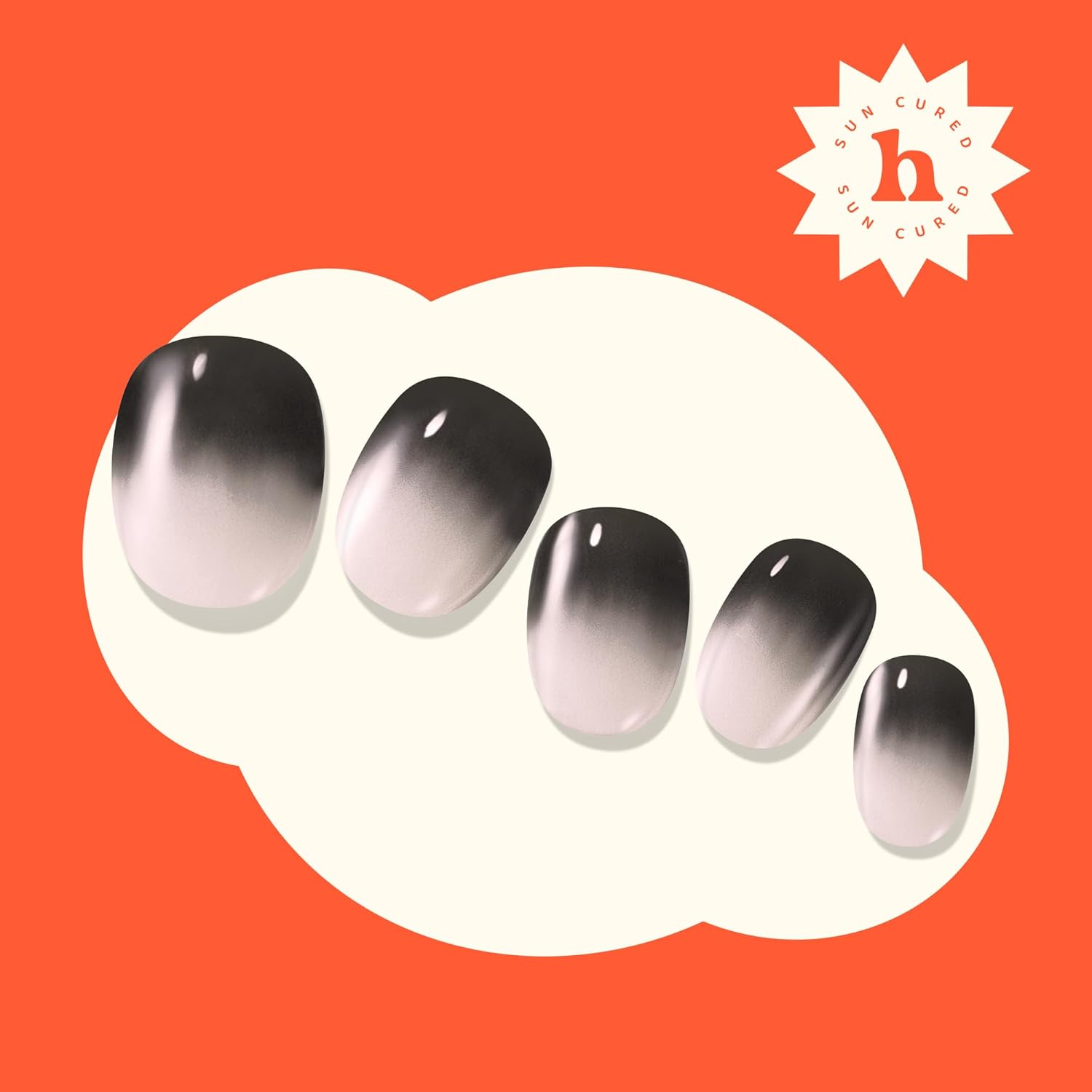 Semi Cured Gel Nail Strips | No LED Lamp Needed | Ombre, Black, Pink | Easy Apply & Remove, Salon Quality | Includes 28 Strips, 1 Prep Pads, Nail File & Wooden stick - Hey, Flash On Please
