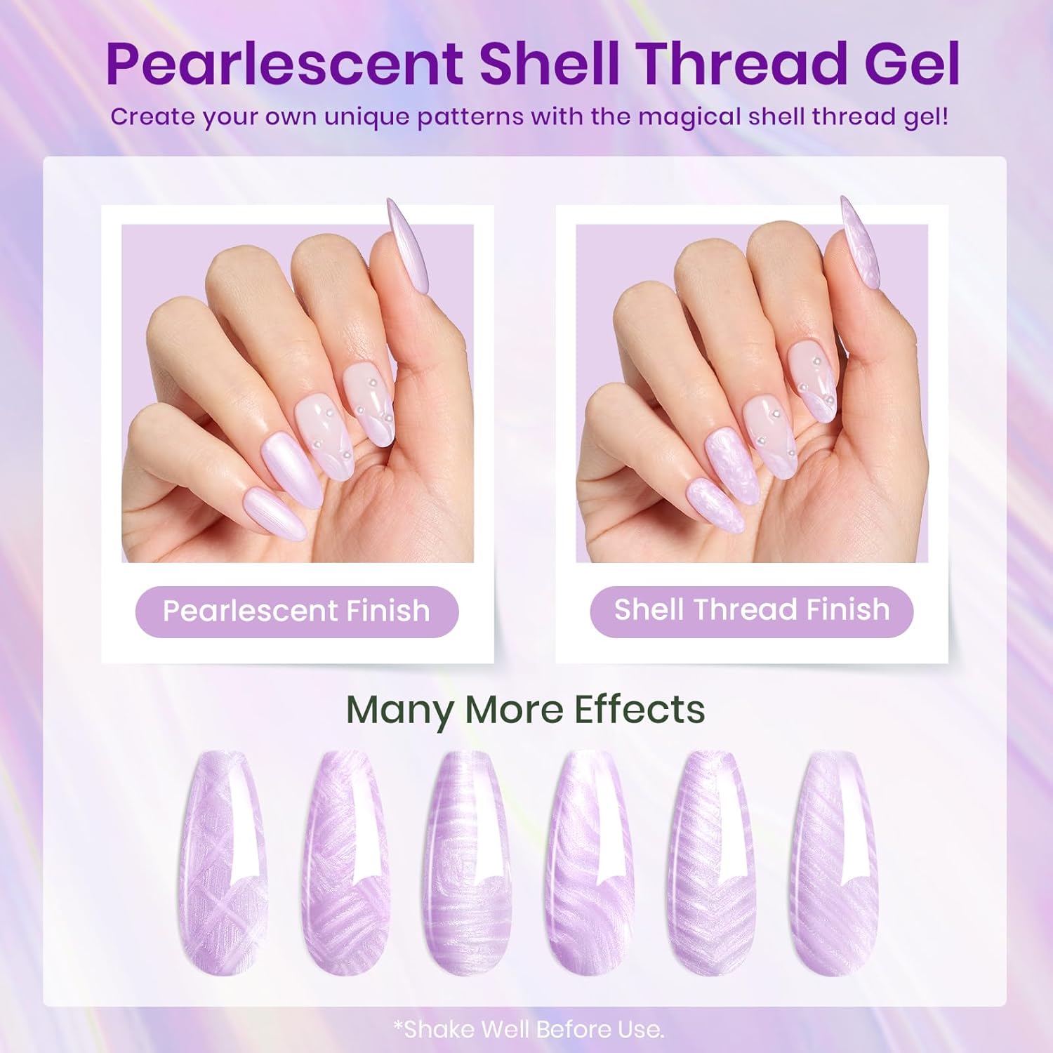 Beetles Purple Gel Nail Polish Set, 6 Color Spring Purple Shimmer Pearl Jelly Gel Polish with Nail Brush Soak Off LED Lamp Swirl Shell Thread Effect DIY Manicure Gifts for Mom