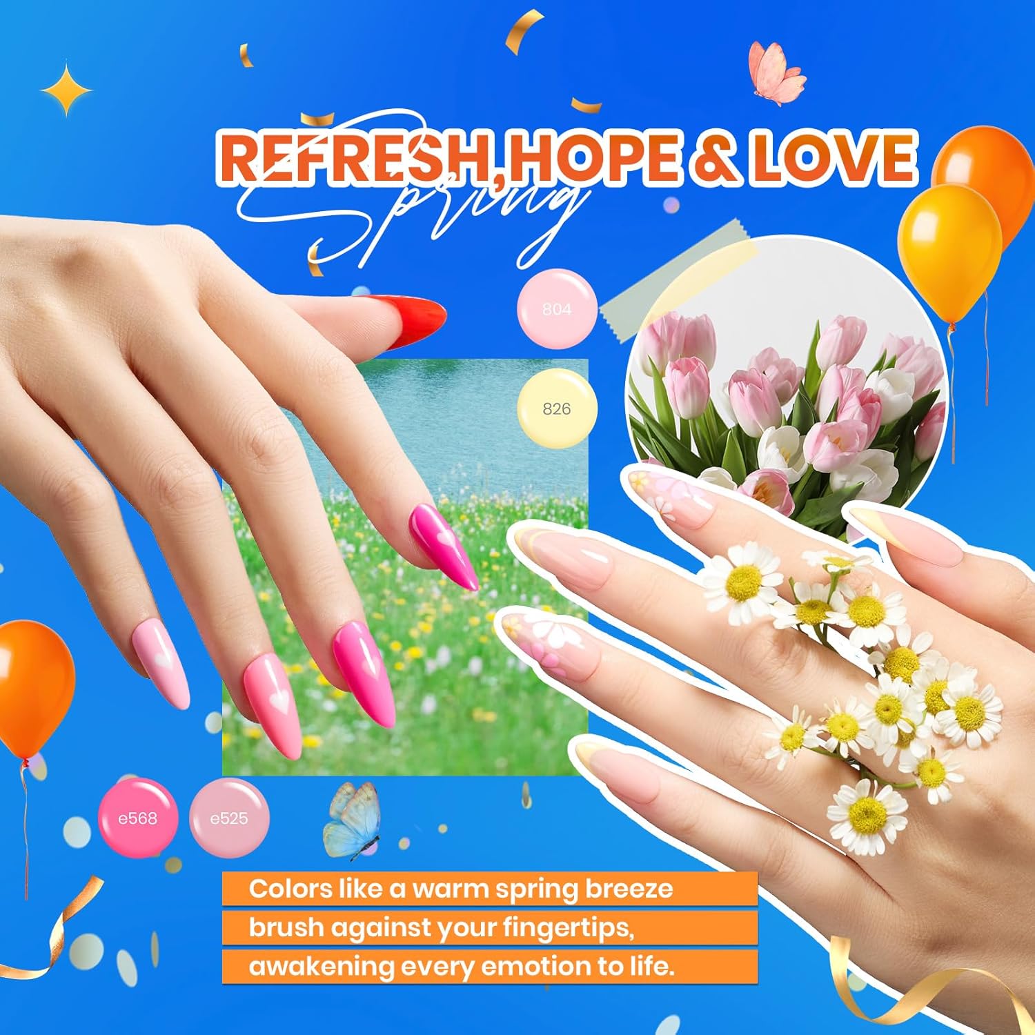- All-Year-Round Colors â Inspired by the 4 Seasons: This 36-color gel nail polish set includes carefully curated shades for Spring, Summer, Fall, and Winter â from pastel pinks and fresh greens to earthy browns and icy blues. Perfect for matching your nails to every mood, outfit, or season.