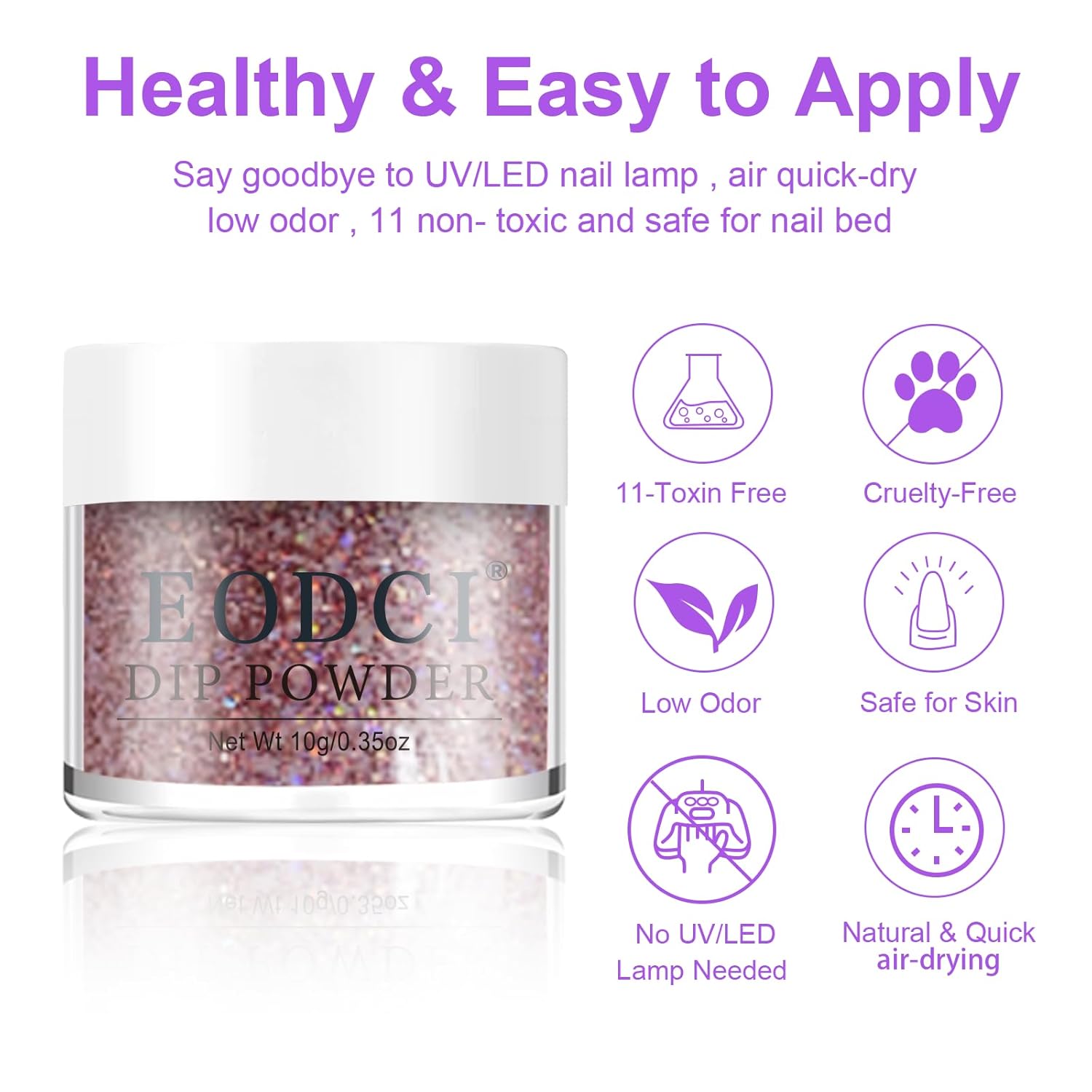 - 【No Lamp Needed】Eodci Nail Dipping Powder does not require UV/LED light to cure, is skin friendly while avoiding skin darkening and damage, safe and easy to use, suitable for beginners and professional nail salons.