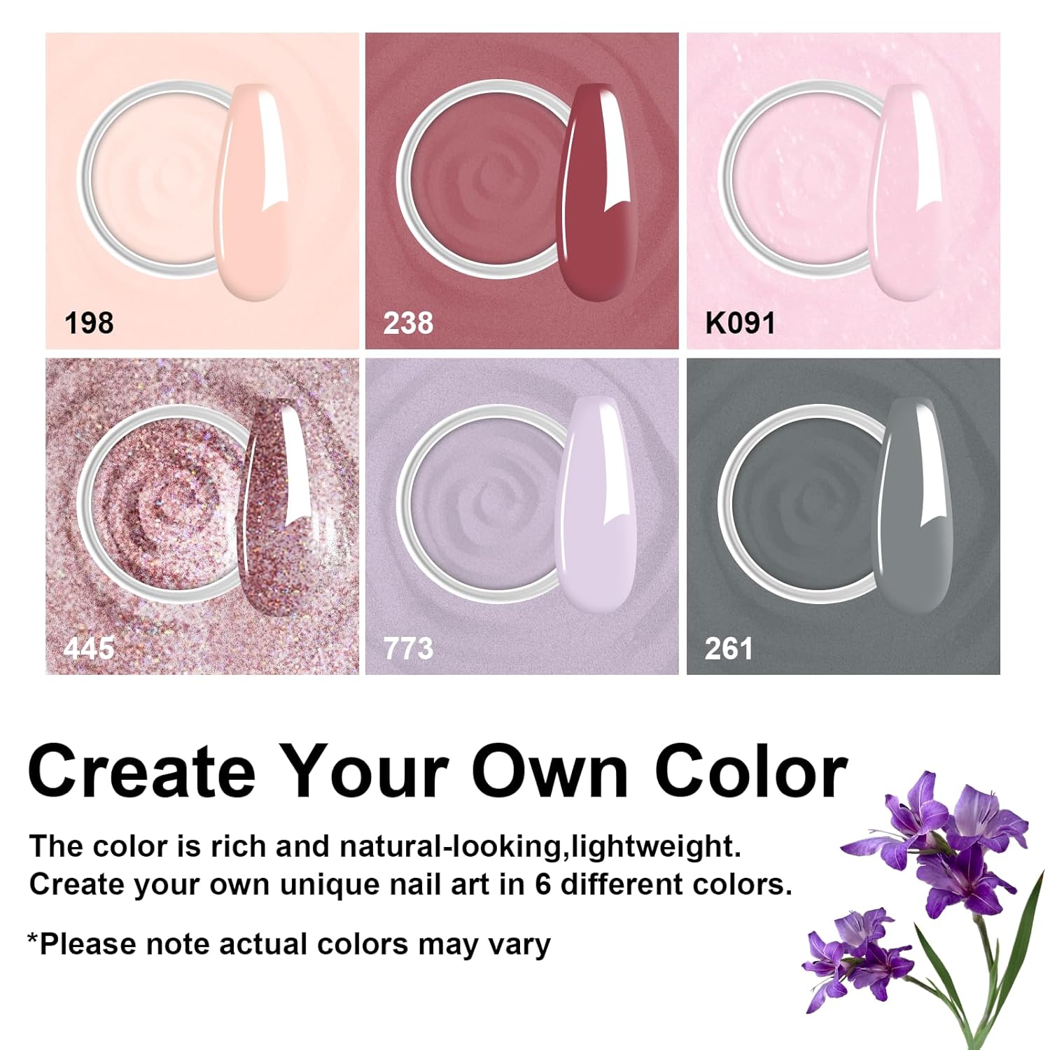 - Included Components : Dip Powder(6*0.35oz), Dip Liquid Set(4*0.5floz), Nail Brush*1, Nail file*1,Substitute brush*2