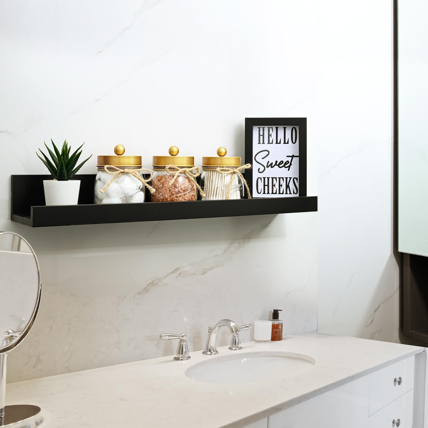 - 💐Elegant and Cute Bathroom Decor: Add charm to your bathroom with this glass bathroom mason jars set! Perfect accent to bathroom shelving, bathroom countertop, makeup vanity, carft room, black and white accented bathroom, and guest bathroom. Ideal for home decor, this collection embodies a variety of styles including rustic, western, farmhouse, and contemporary designs. It is particularly well-suited for bathroom decor and offers a versatile aesthetic that complements both traditional and modern interiors.
