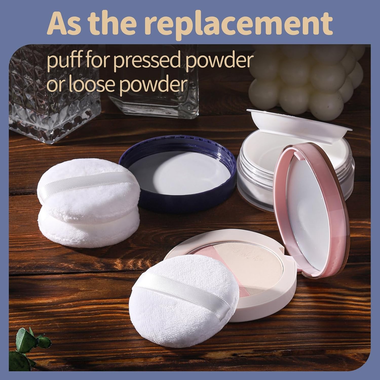 - Makeup Powder Puff with Container: Come with 3pcs 2.36"(6cm) white powder puffs for face powder and cases. Each powder puff is well packaged in case. Convenient and clean for storage use. Suitable for daily use, quick touch-ups and traveling. Put setting powder puff with container in your package or bag, no worrying about getting puff dirty and mess