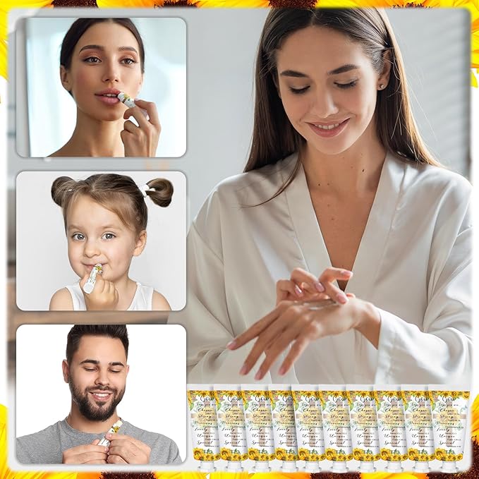 144 Pcs Christian Lip Balm Hand Cream Set Party Favors, Include 36 Bible Lip Balm 36 Moisturizing Hand Cream 36 Bags 36 Cards and Ropes for Accessories Gifts (Biblical, Sunflower)