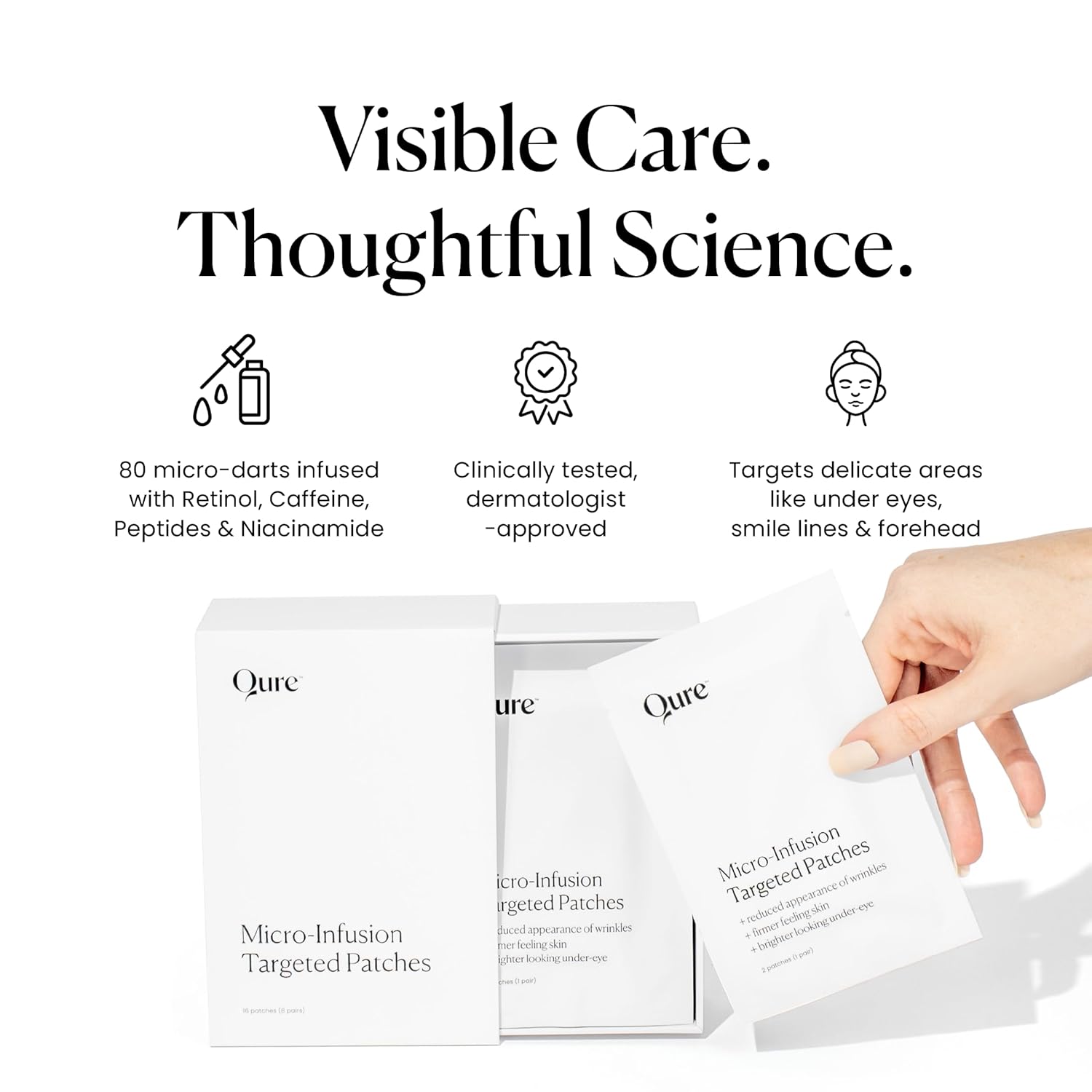 Qure Skincare MicroInfusion Targeted Patches - 8 Pairs of Targeted Under Eye Patches Formulated for Fine Lines & Wrinkles - Retinol, Caffeine, Niacinamide & Peptides - Dissolvable for Overnight Use