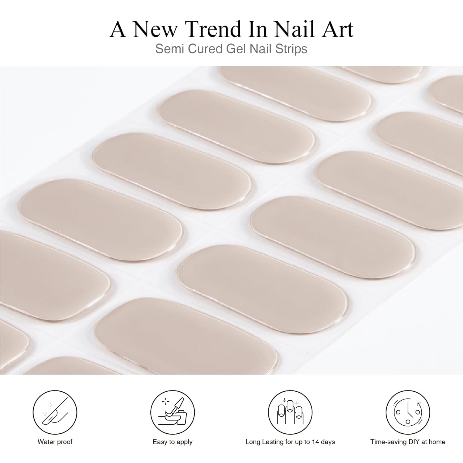 Semi Cured Gel Nail Strips, 20 PCS Gel Nail Stickers Work with UV Light, Gel Nail Wraps, Salon Quality & Easy to Use - Cream Coffee