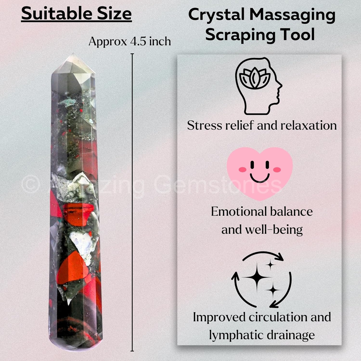 Amazing Gemstone African Bloodstone Crystal Wand Massage Stick - Pelvic Wand Gua Sha for Adults - Crystals and Healing Stones Massage Wands for Adults Gifts (Pointed)