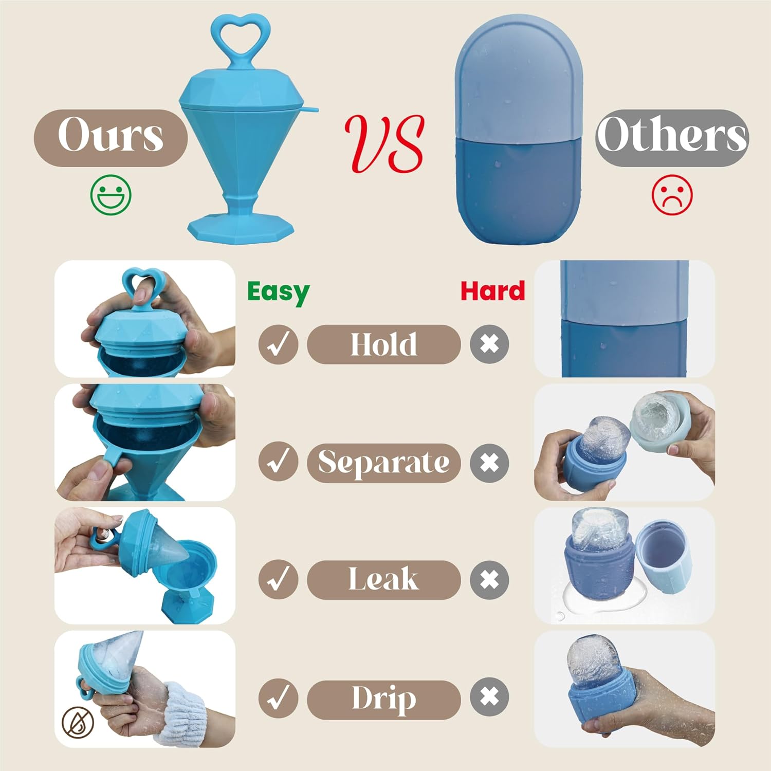 Rena Chris Ice Roller for Face: Diamond Ice Facial Roller, Reach Detailed Areas, De-Puff Eye Bags, Reusable Silicone Massage Ice Mold with Face Wash Wristband, Skin Care Tools for Women(Blue)