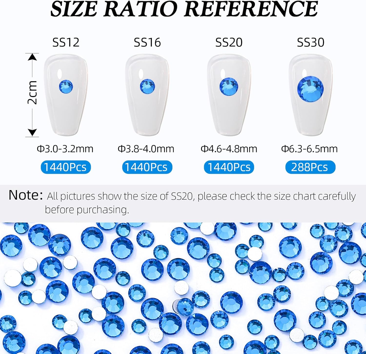 Capri Blue Flatback Rhinestones, Glass Rhinestones for Nail Art and Craft, Glue Fix, Loose Crystal Gemstones(Capri Blue, SS16, 1440pcs, 3.8-4.0mm)