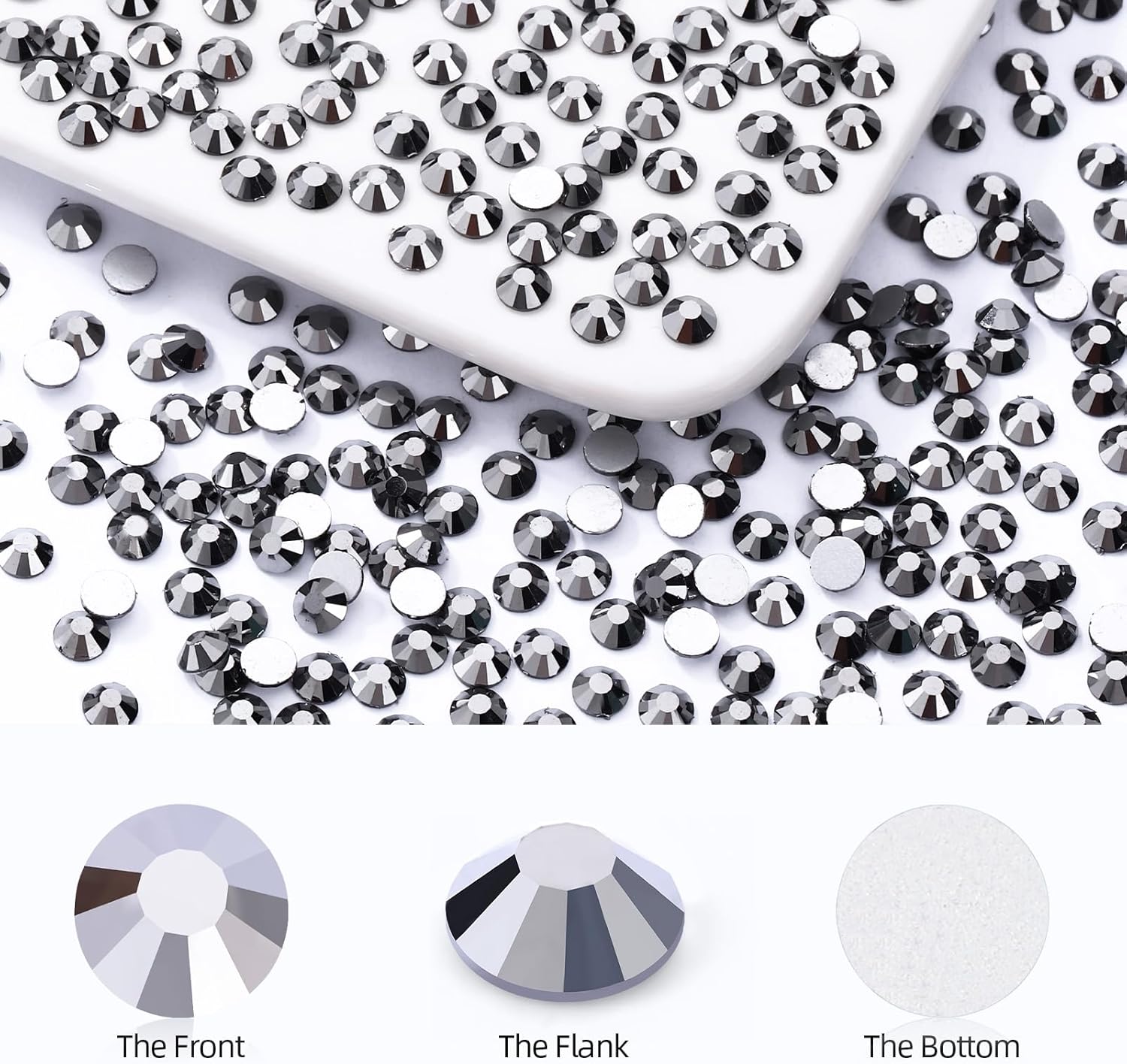 Black Hematite Flatback Rhinestones, Glass Rhinestones for Nail Art and Craft, Glue Fix, Loose Crystal Gemstones(Black Hematite, SS12, 1440pcs, 2.9-3.0mm)