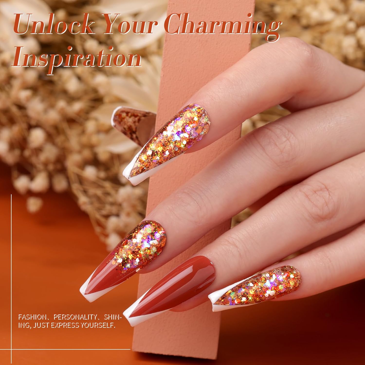 - PACKAGE CONTENTS:6 Bottles 7ml glitter gel polish.This super pigmented set with heavy glitter gel is a must have for every nail tech and DIY user!A full set of sparkly glitters to mix and match for any energetic spirit! Get your beauty manicure set on with the Shiny nail polish gel.