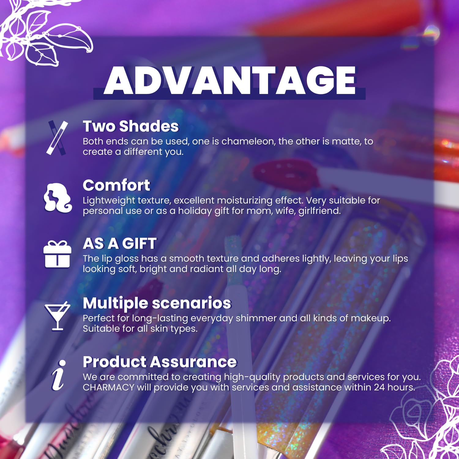 CHARMACY Multichrome Double Head Non-Stick Lip Gloss, Metallic Colourful Lip Glaze, Anti-transfer, Long Lasting Waterproof Liquid Lipstick Makeup (#01)