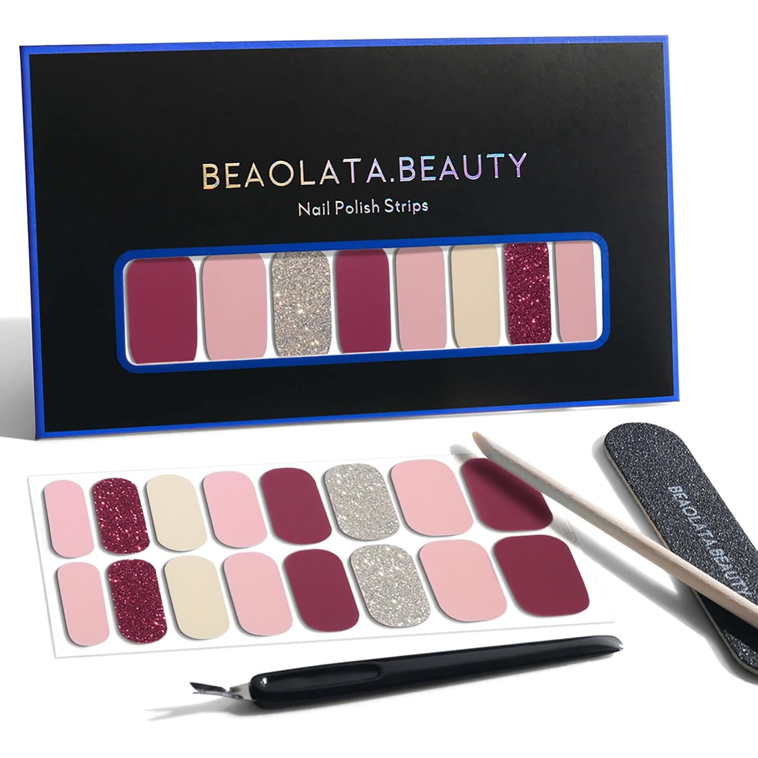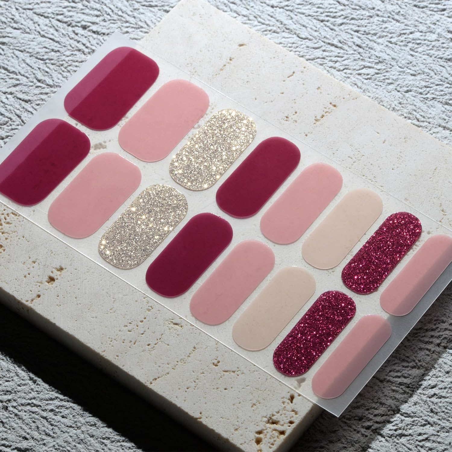 Nail Polish Strips, 32PCS Salon Quality Wraps, Long Lasting Gel Nail Stickers for Women Easy Apply& Remove (Straberry Shortcake)