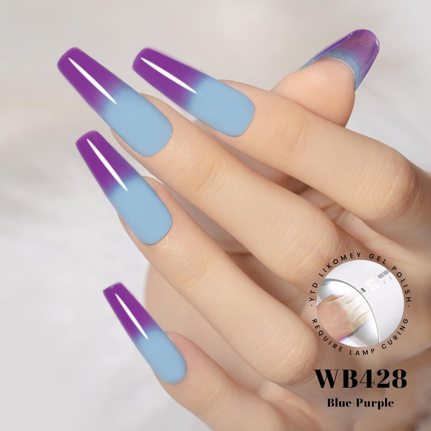 YTD Likomey Color Changing Gel Nail Polish,15ml Blue to Purple Mood Temperature Change Colors UV Nail Gel,Fall Winter Thermal Ombre Manicure Varnish,WB428