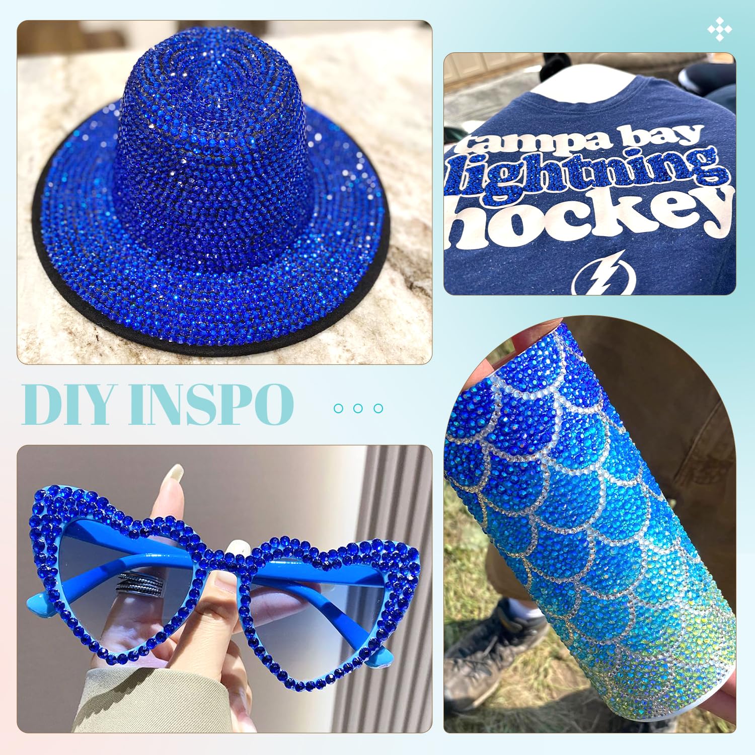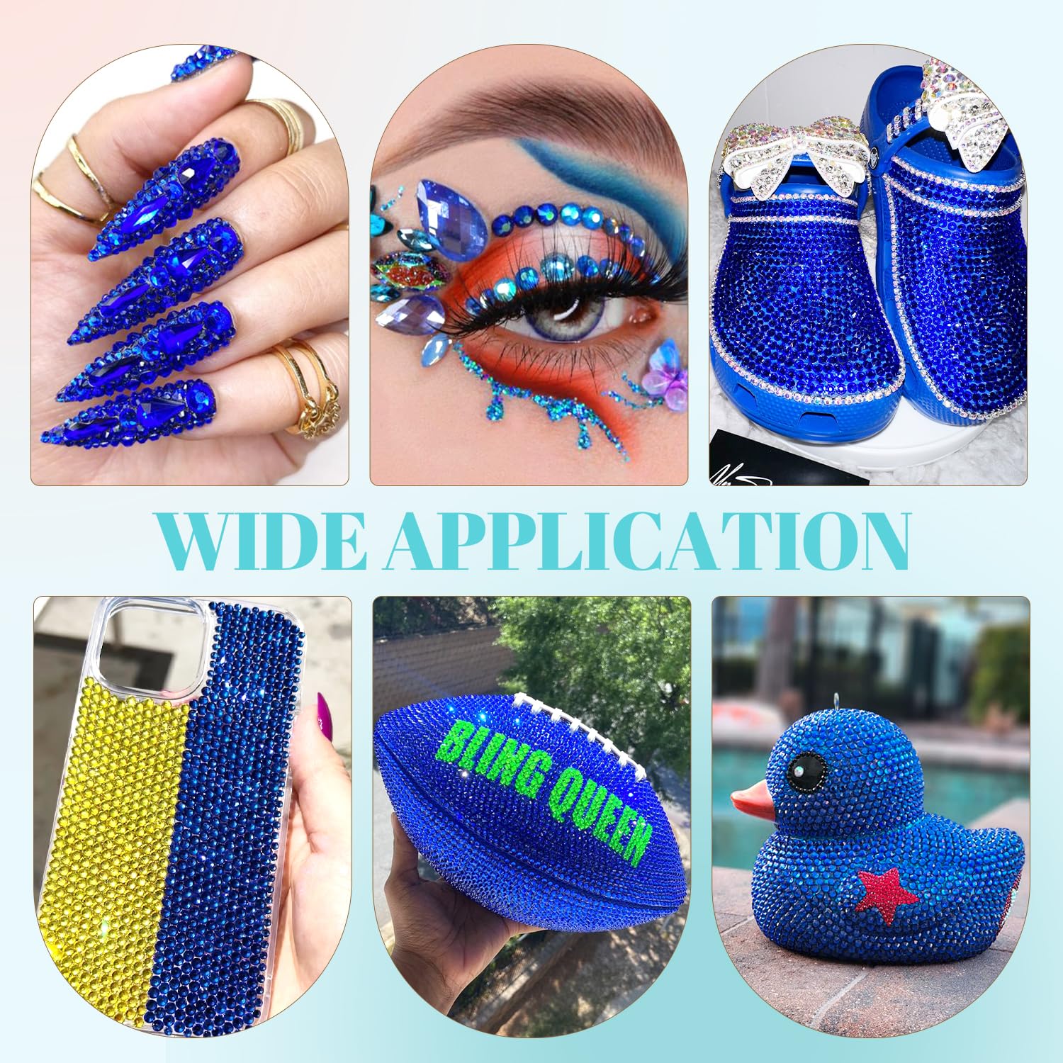 6100Pcs Royal Blue Rhinestones for Crafting with 2Pcs 10ml B7000 Jewelry Glue, 1 Box Flatback Crystals Diamond for Bedazzling Crafts DIY Nail Art Resin Gems for Clothing Shoes