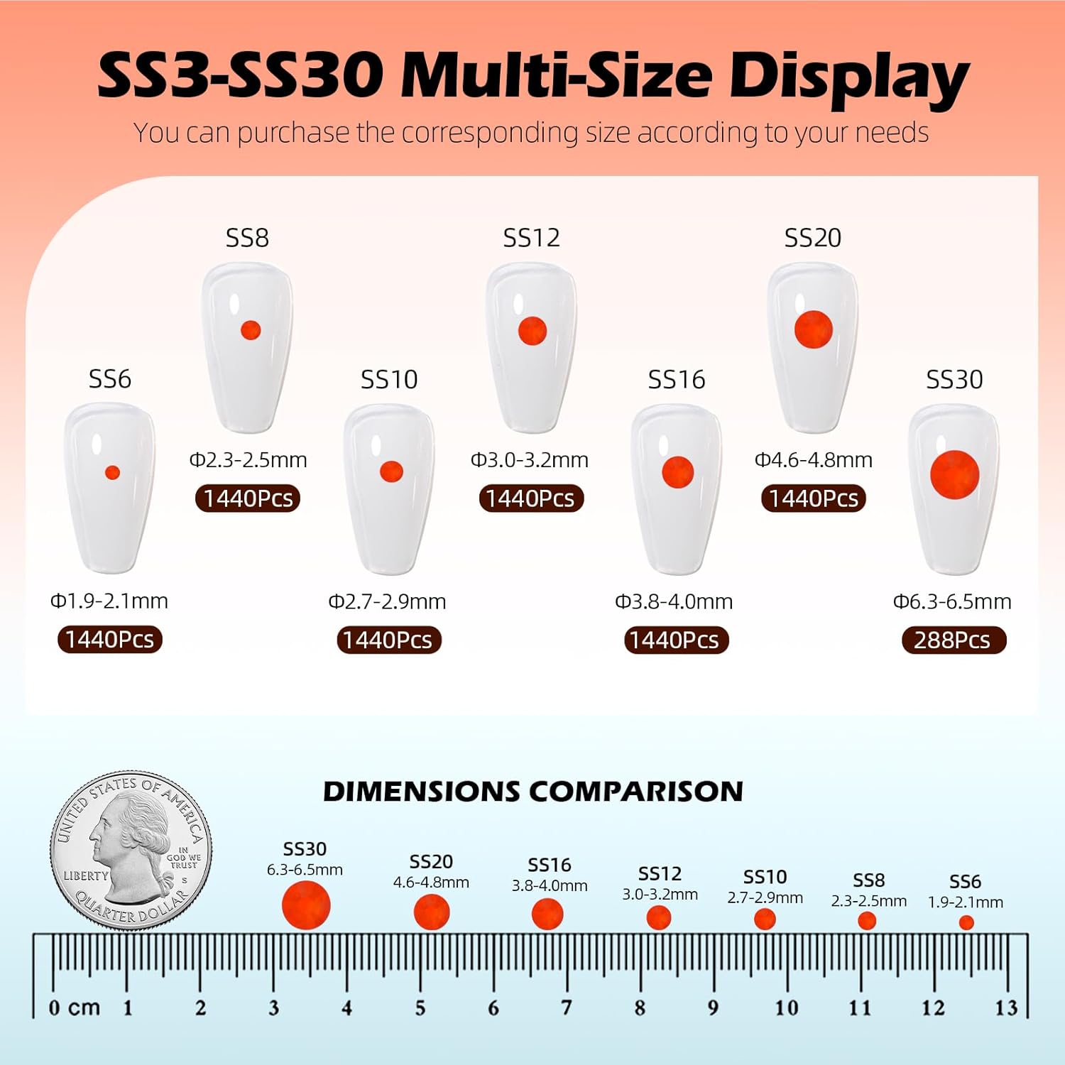 - Material: Glass/Artificial Crystal, Flat Back Round, High-precision cross-section, multi-sided cutting, high brightness, high Sparkly