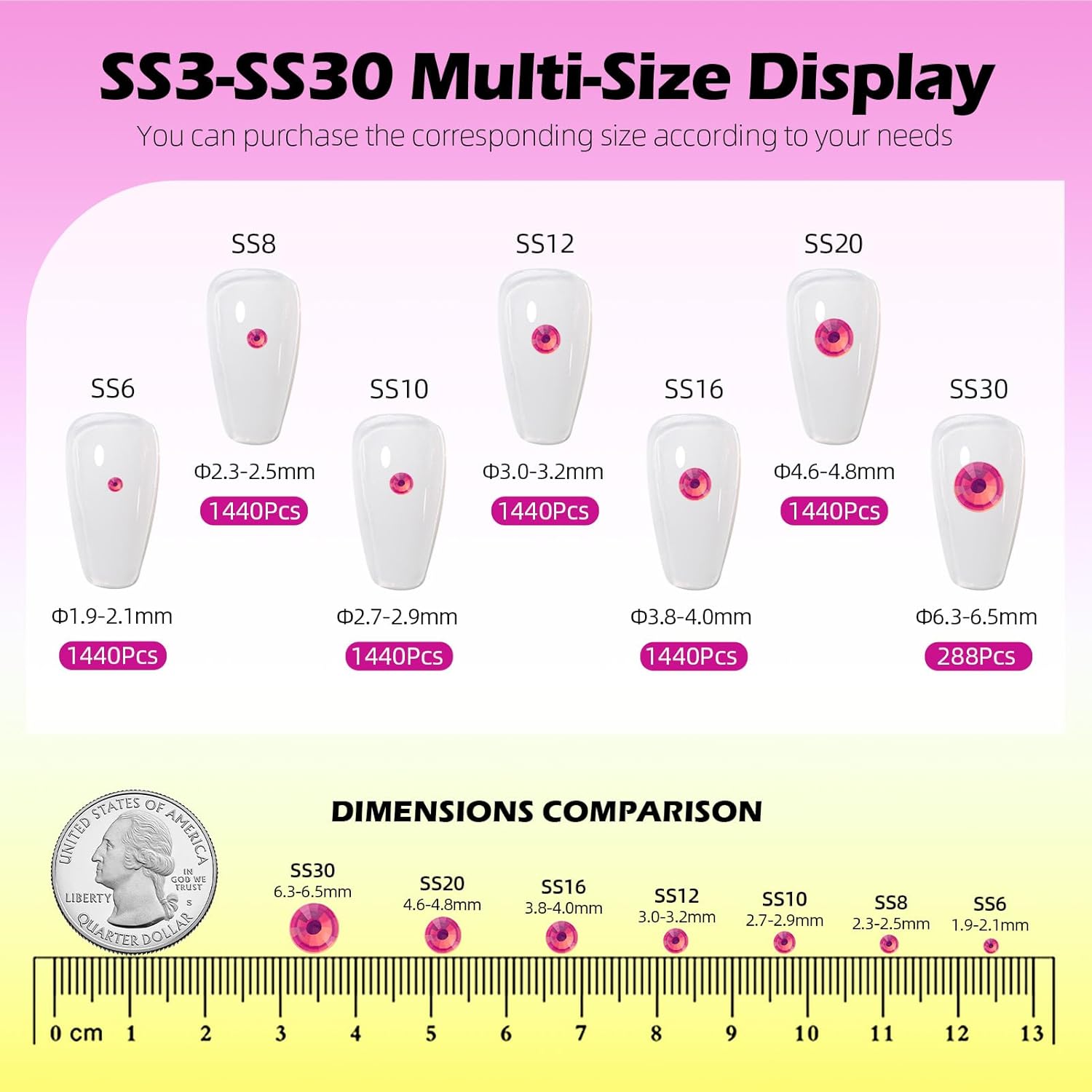 F Rose Flatback Rhinestones, Glass Rhinestones for Nail Art and Craft, Glue Fix, Loose Crystal Gemstones(F Rose, SS12, 1440pcs, 2.9-3.0mm)