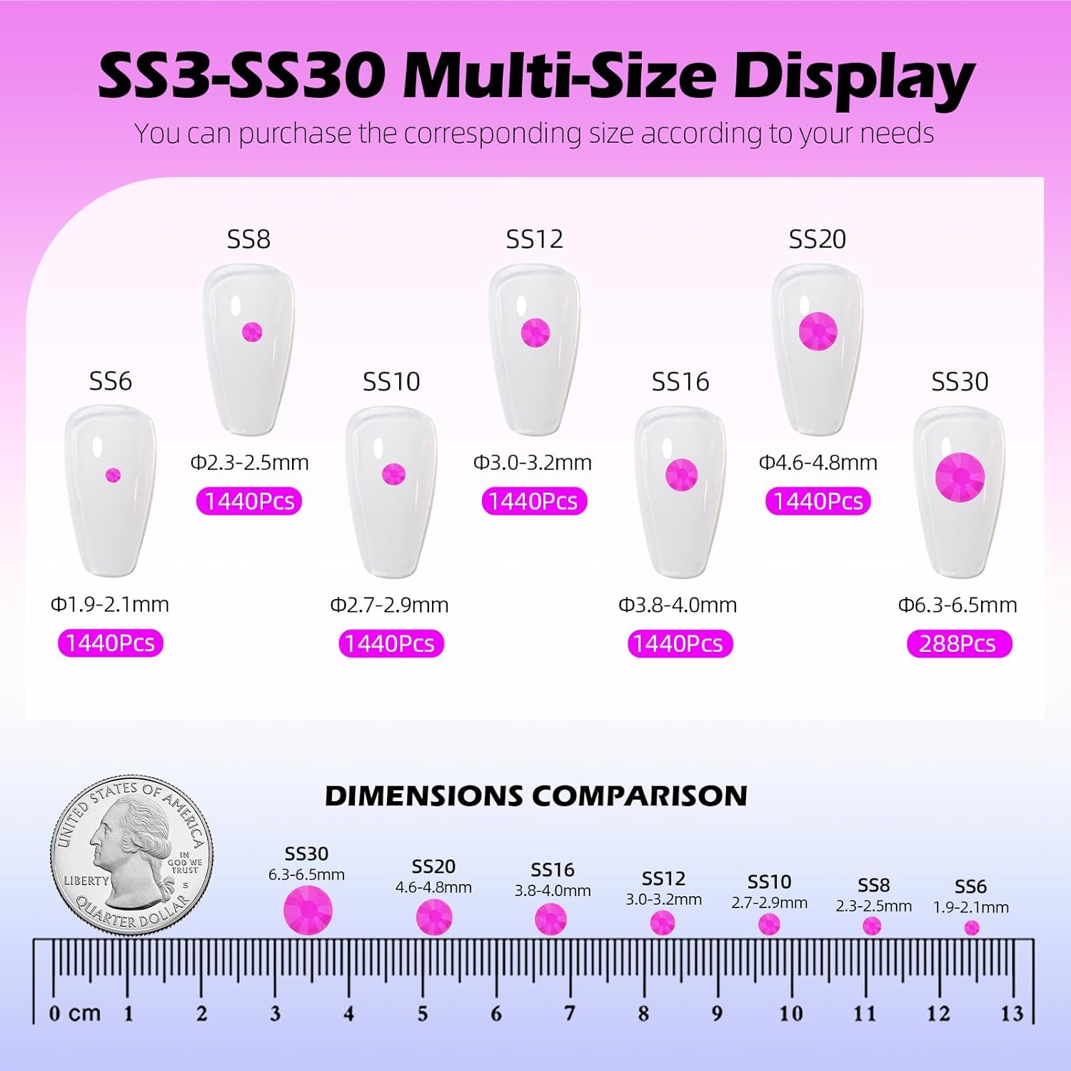 - Product Packaging: Bags packaging SS6 1.9~2.0 MM - 1440 Pcs Neon Purple flatback rhinestones