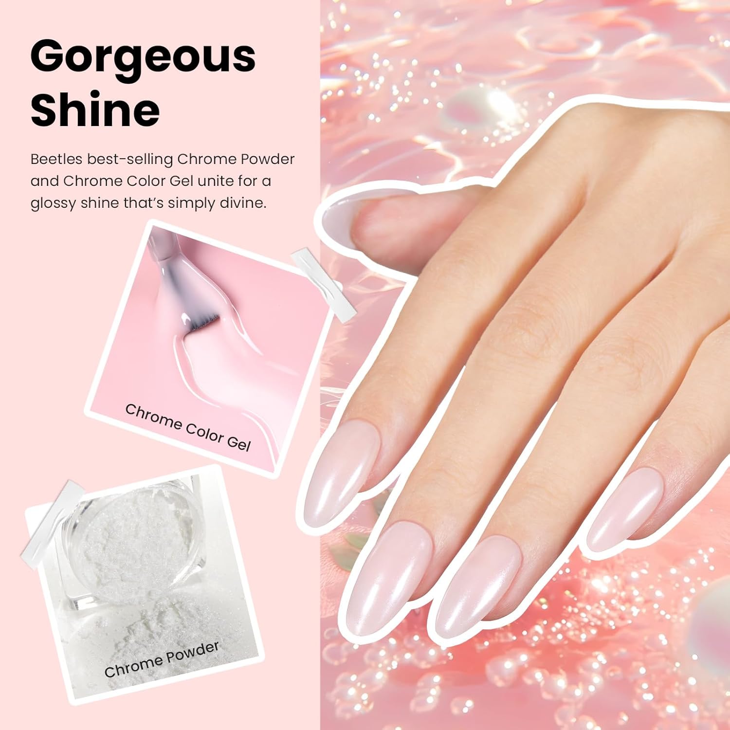 - Chrome Color Gel All-In-One KitďźNeutral gel polish set specially made for glazed donut nailďźinclude Base Coat 7.5mL *1/Top Coat 7.5mL *1/Liquid Peel Off Latex Tape 7.5mL *1/Chrome Color Gel 7.5mL *1/Chrome Powder 0.5g *1/Silicone Nail Brush *1/Instruction Manual *1ďźThe combination of classic nude nail glue and magic mirror powder creates the most popular nail art style by 2024.