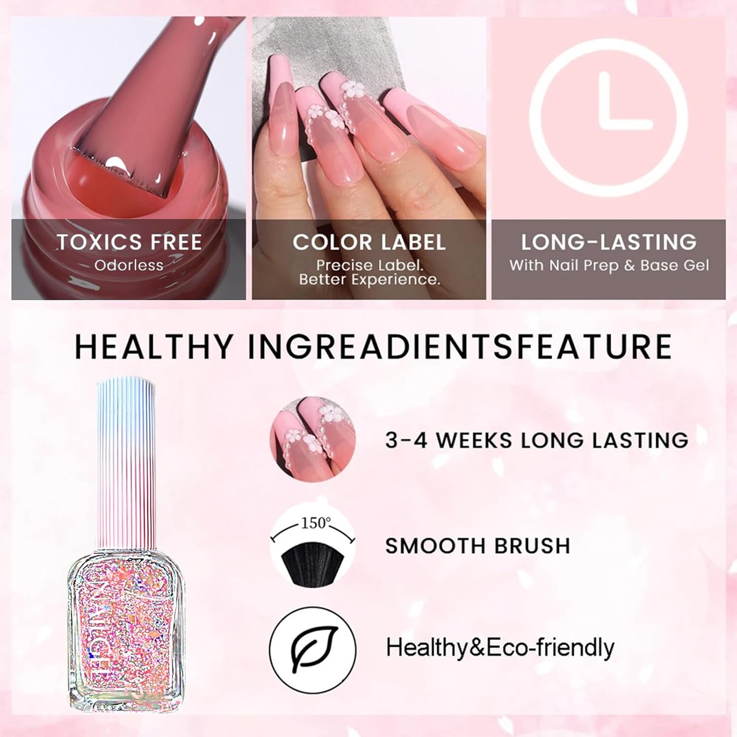 - 【Nice for Beginners】 It's a nice gel glitter polish for beginners to create a stunning pleasing nail polish look without many steps or tools