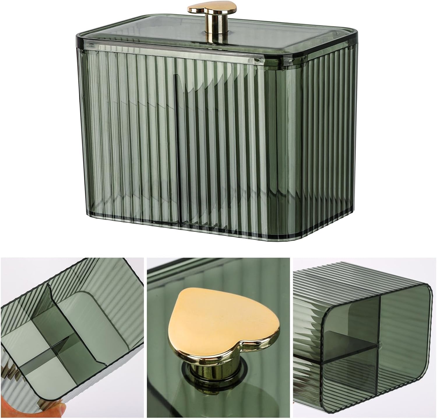 Tbestmax Qtip Holder Dispenser 3-Section Clear Bathroom Organizer Jar 3 Grids Cotton Swab/Pad/Ball Holder Container Cosmetics Storage for Vanity(2 Pack Green)