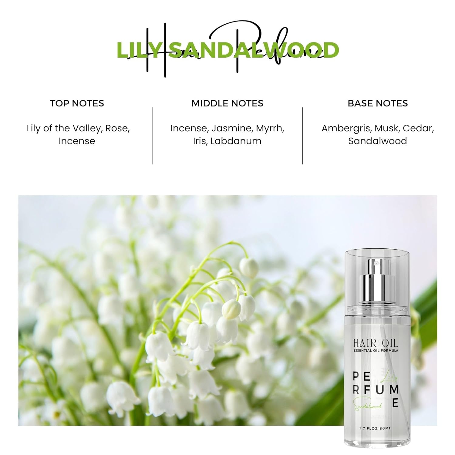 Hair Perfume Oil for Women (Lily Sandalwood), Argan Oil Heat Protection Spray for Dry, Damaged, Firzzy Hair Care, Long Lasting Fragrance Mist with Keratin & Elastin for Nourish & Smooth 2.7 fl oz