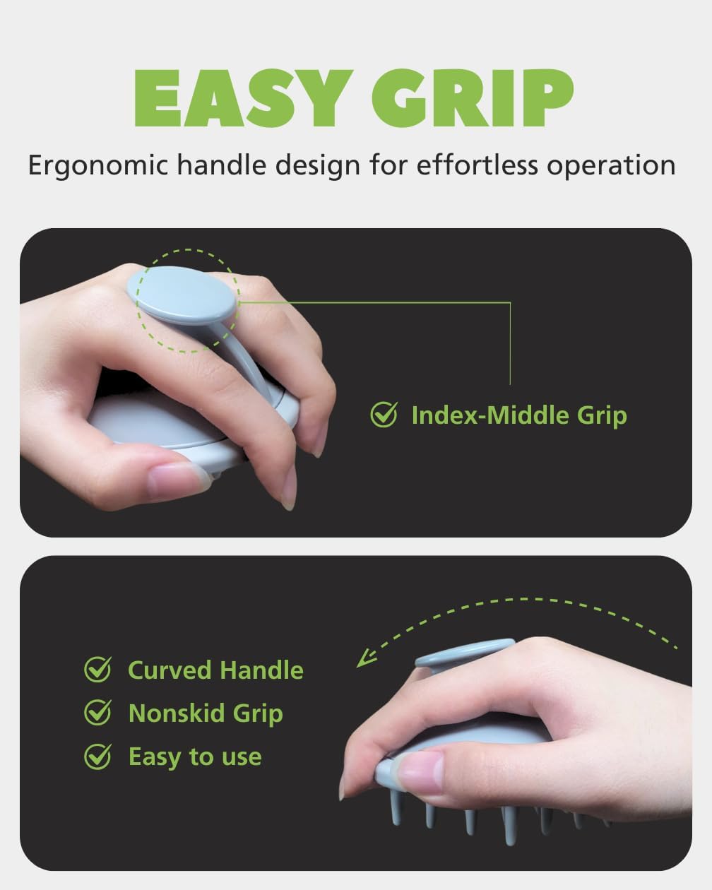 - Ergonomic & Non-Slip Design – Features a comfortable grip handle for easy use in the shower or during dry scalp massage sessions.