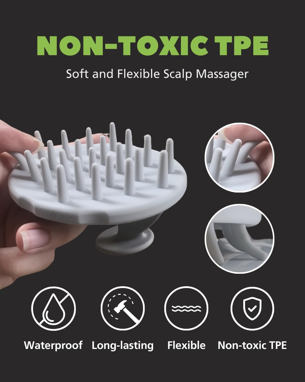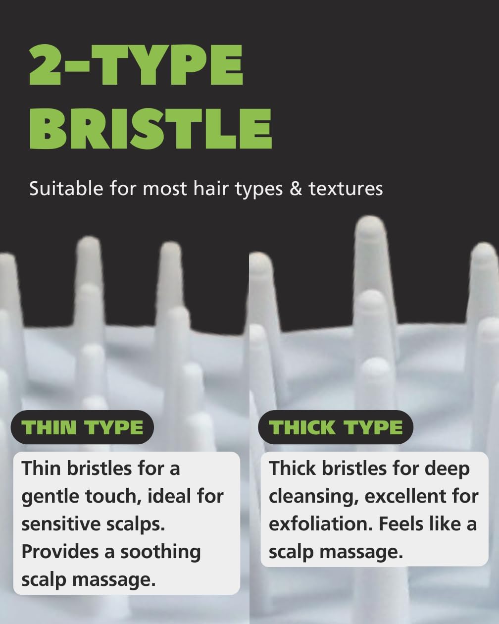 - 2-in-1 Scalp Massager Set – Includes two scalp scrubbers with thick and thin bristles for deep cleansing and an invigorating massage experience.