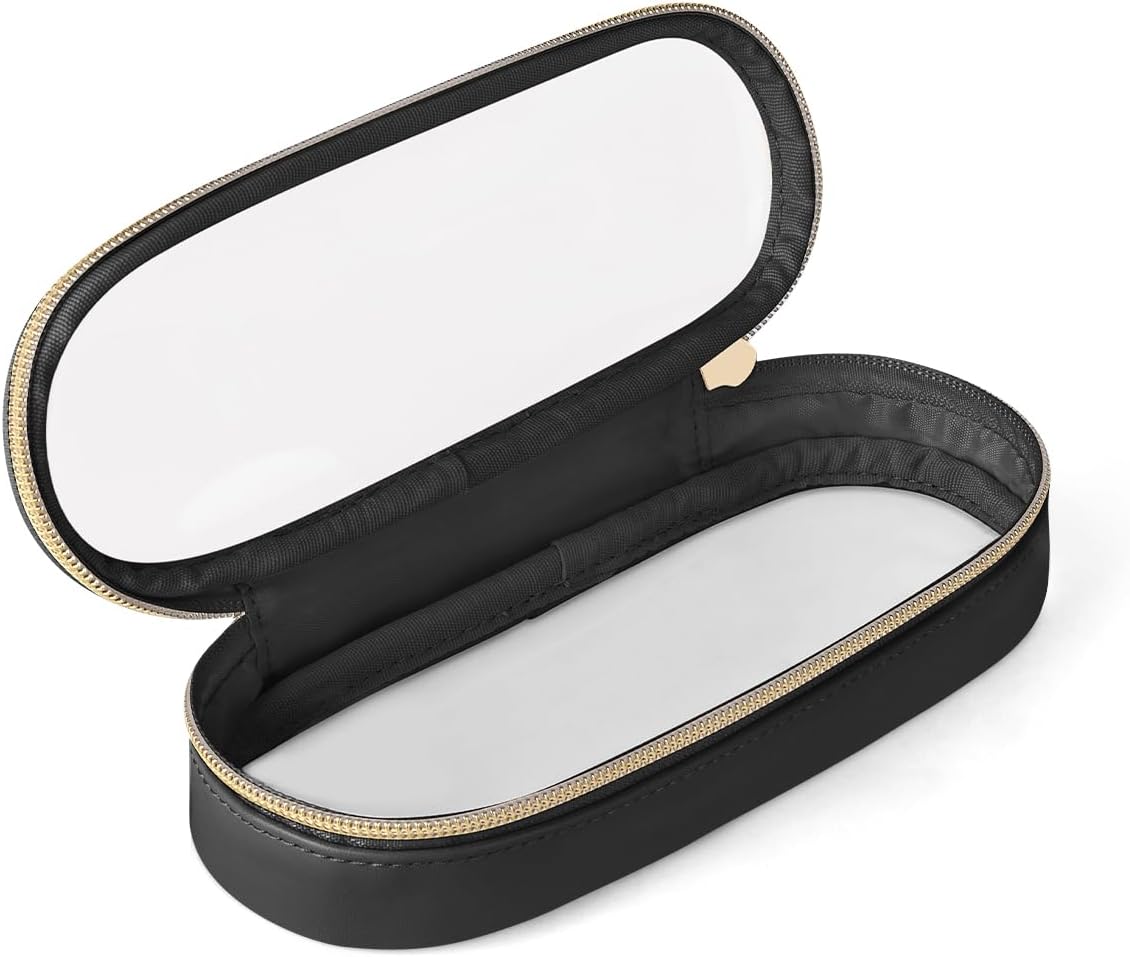 Clear Travel Makeup Brush Holder, Leather Makeup Brush Toiletry Bag, Portable Cosmetic Brush Case, Transparent Waterproof Makeup Brush Storage Bag, Black, Large