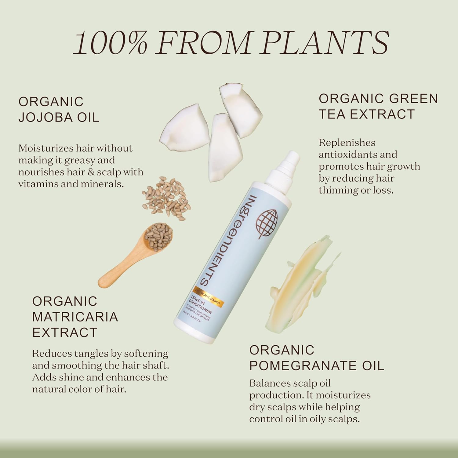 Detangler and Leave In Conditioner made with Organic ingredients - Sulfate-Free, Color-Safe, Silicone-Free, Cruelty-Free, Gluten Free (9.6 FL OZ)