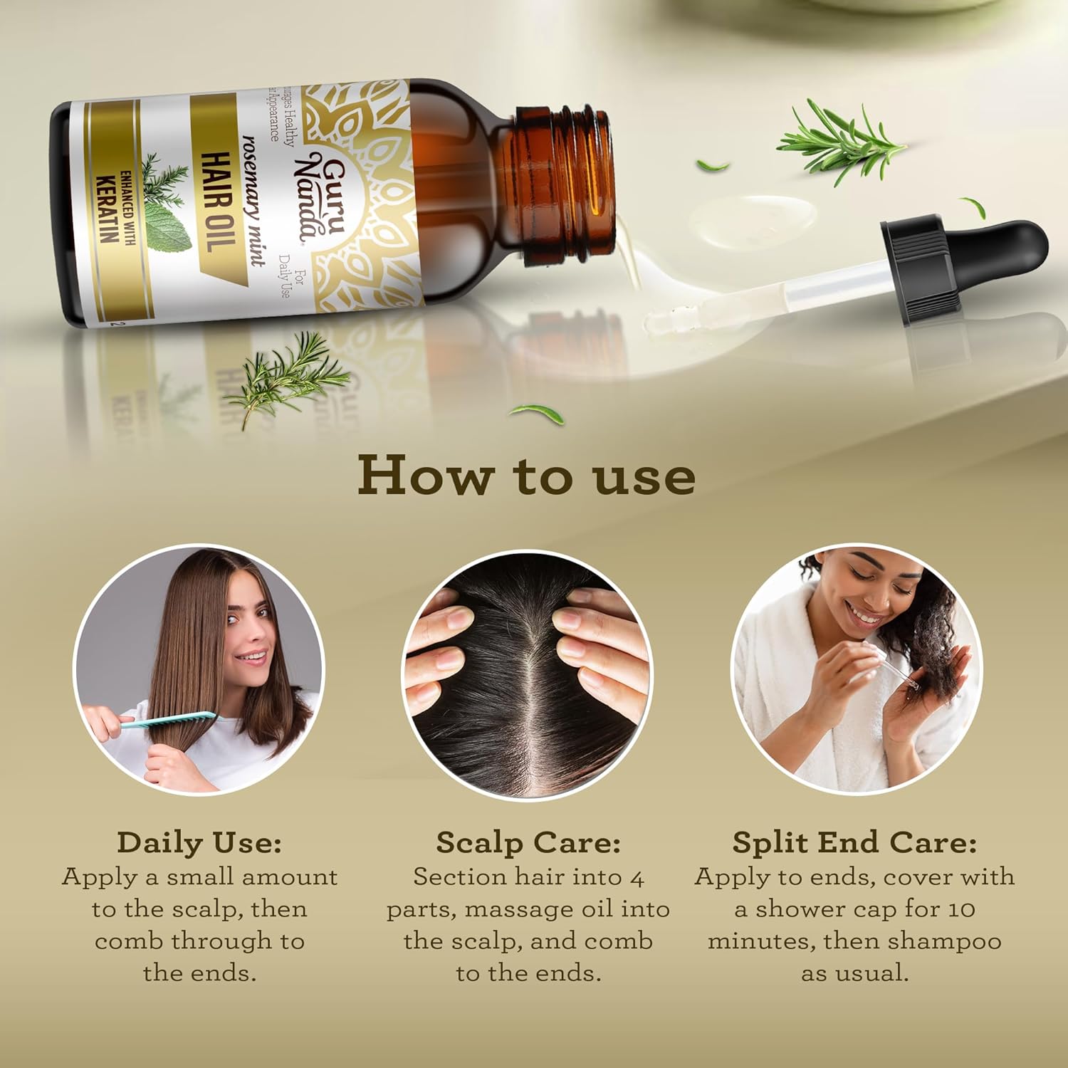 - GuruNanda Rosemary Mint for Hair Growth with Keratin & Vitamin E Oil - Encourages Scalp, Shine & Hair Strengthening- 100% Natural, Cruelty-Free, 2oz