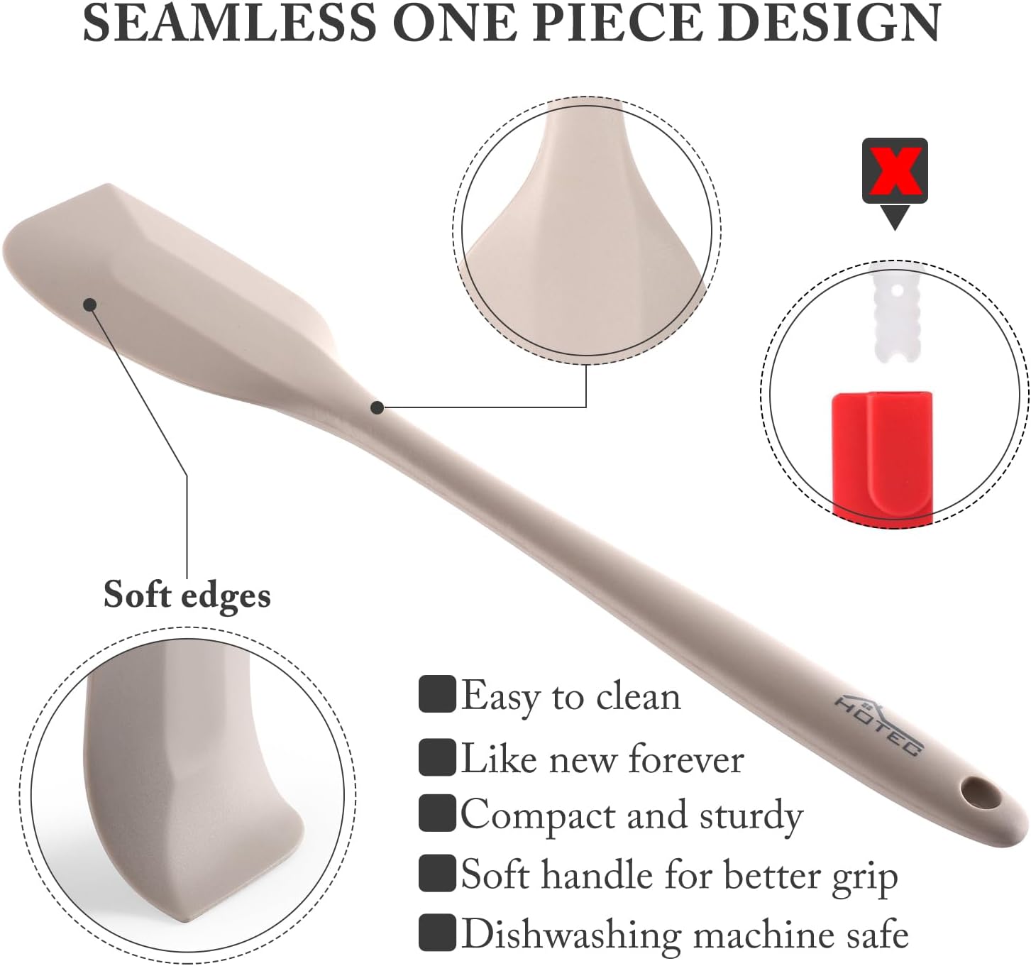 HOTEC 600℉ Heat Resistant BPA-Free Silicone Rubber Spatula Set,Kitchen Cooking Spatulas, Baking, Mixing for Non Stick Cookware, Dishwasher Safe, Set of 5, Khaki
