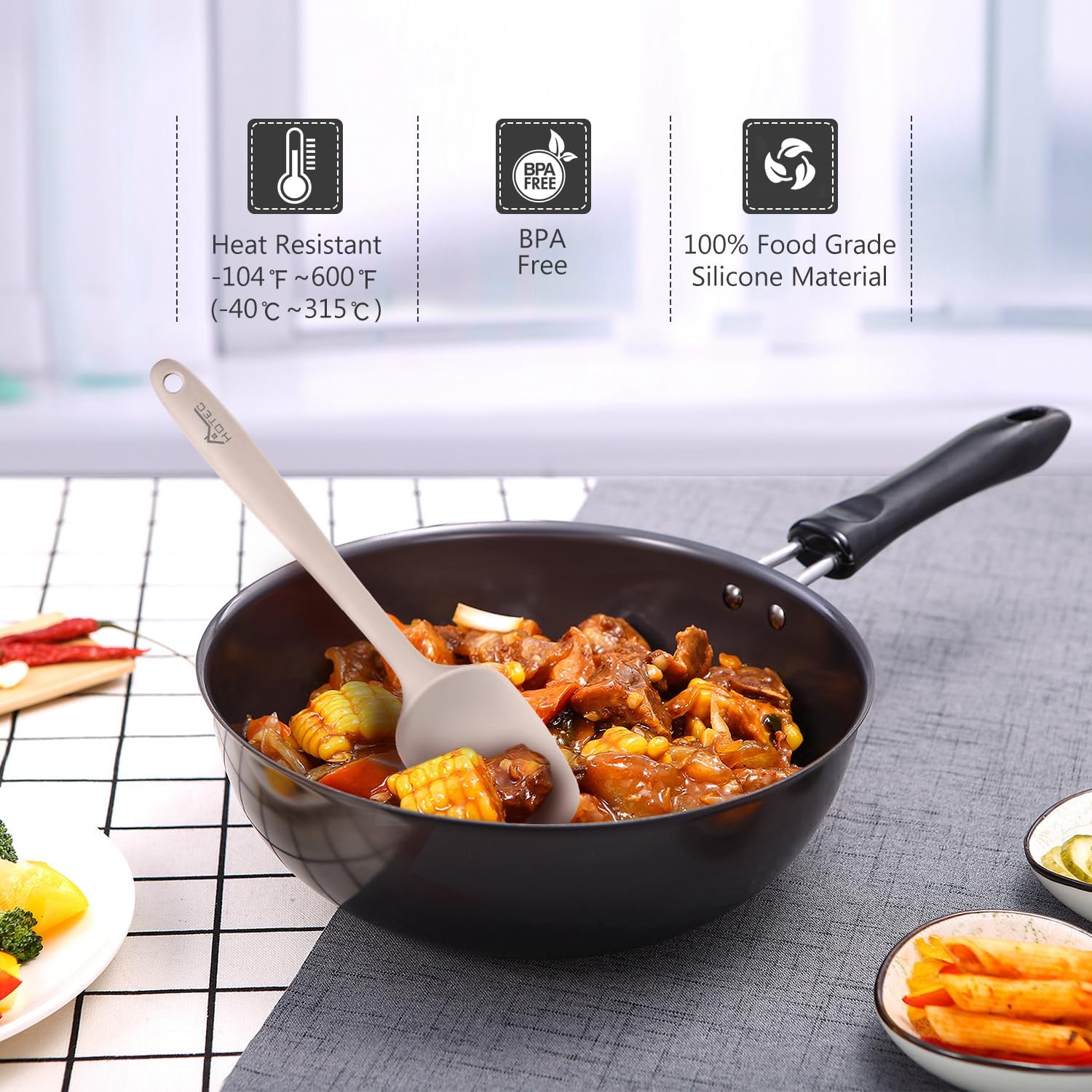 - [ SEAMLESS ONE PIECE DESIGN] :Seamless one piece design ,easy to clean ,and Non-Stick ,Soft Handle for better grip ,Noiseless & Harmless ,Perfect for baking ,cooking and mixing etc.,