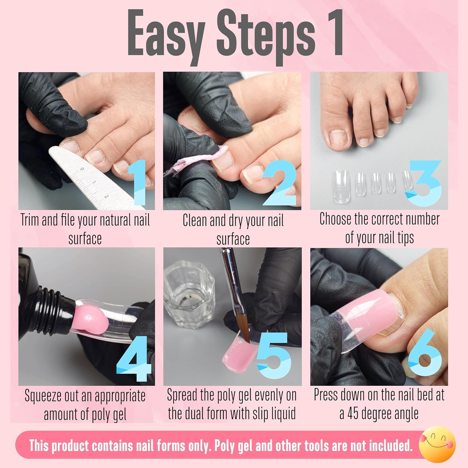 - THE WORLD'S FIRST DUAL FORM FOR TOES: Designed specifically for nail artists and DIY enthusiasts, NOVO OVO proudly presents the world's first toe dual form. Effortlessly build your nails with poly gel inside the dual forms, place them on your toenails, cure, and simply pop them off. This innovative solution is perfect for those with short natural nails or anyone struggling to find the right nail tips.